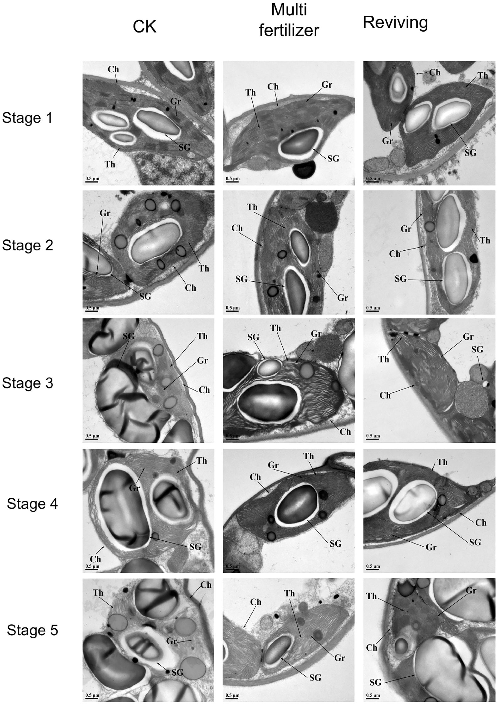 During tobacco leaf development, distinct phenotypes exhibit divergent growth traits and biochemical trajectories (See Figure 8). Comparative analyses of physiological, colorimetric, pigment, and routine chemical parameters across these phenotypes revealed significant disparities in growth vigor, chromatic evolution, pigment accumulation, and primary metabolite profiles. Relative to normal mature leaves, lower-quality phenotypes displayed elevated pigment retention, resulting in protracted deep green coloration across developmental stages. Normal mature leaves exhibited superior carbohydrate accumulation, with starch, reducing sugars, and total sugars exceeding those of lower-quality phenotypes during all growth stages and the turning point of decline came late. Furthermore, normal mature leaves maintained lower nitrogenous compound levels (total alkaloids, proteins, and total nitrogen), contributing to reduced smoke harshness and enhanced aromatic quality. In terms of mineral nutrition, normal mature leaves accumulated Cl and K in intermediate quantities relative to the extremes observed in lower-quality phenotypes. Two types of low-quality tobacco leaves exhibit lower sugar compound content and higher nitrogenous compound levels across most leaf areas (excluding midvein and lateral veins). These outcomes may be associated with increased N fertilizer application to low-quality tobacco leaves two weeks later. Electron microscopy further revealed cellular structural divergences: multi fertilizer tobacco leaves exhibited fewer and smaller starch granules and loosely arranged thylakoid membranes, delaying leaf maturation. Reviving tobacco leaves displayed early-stage thylakoid lamellae disintegration, followed by reorganization into densely packed arrays during mid-development, though late-stage granal lamellae degradation was observed.