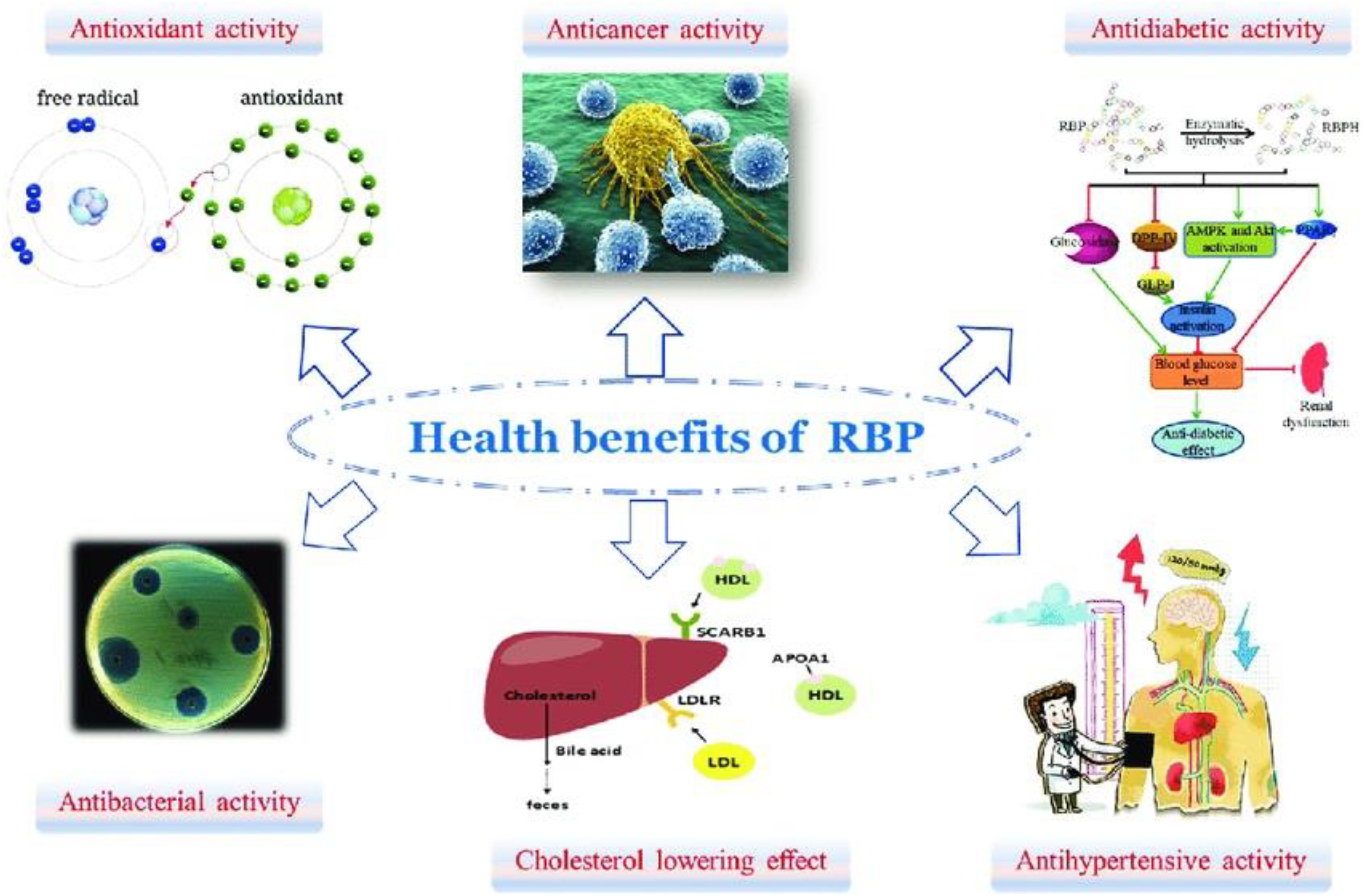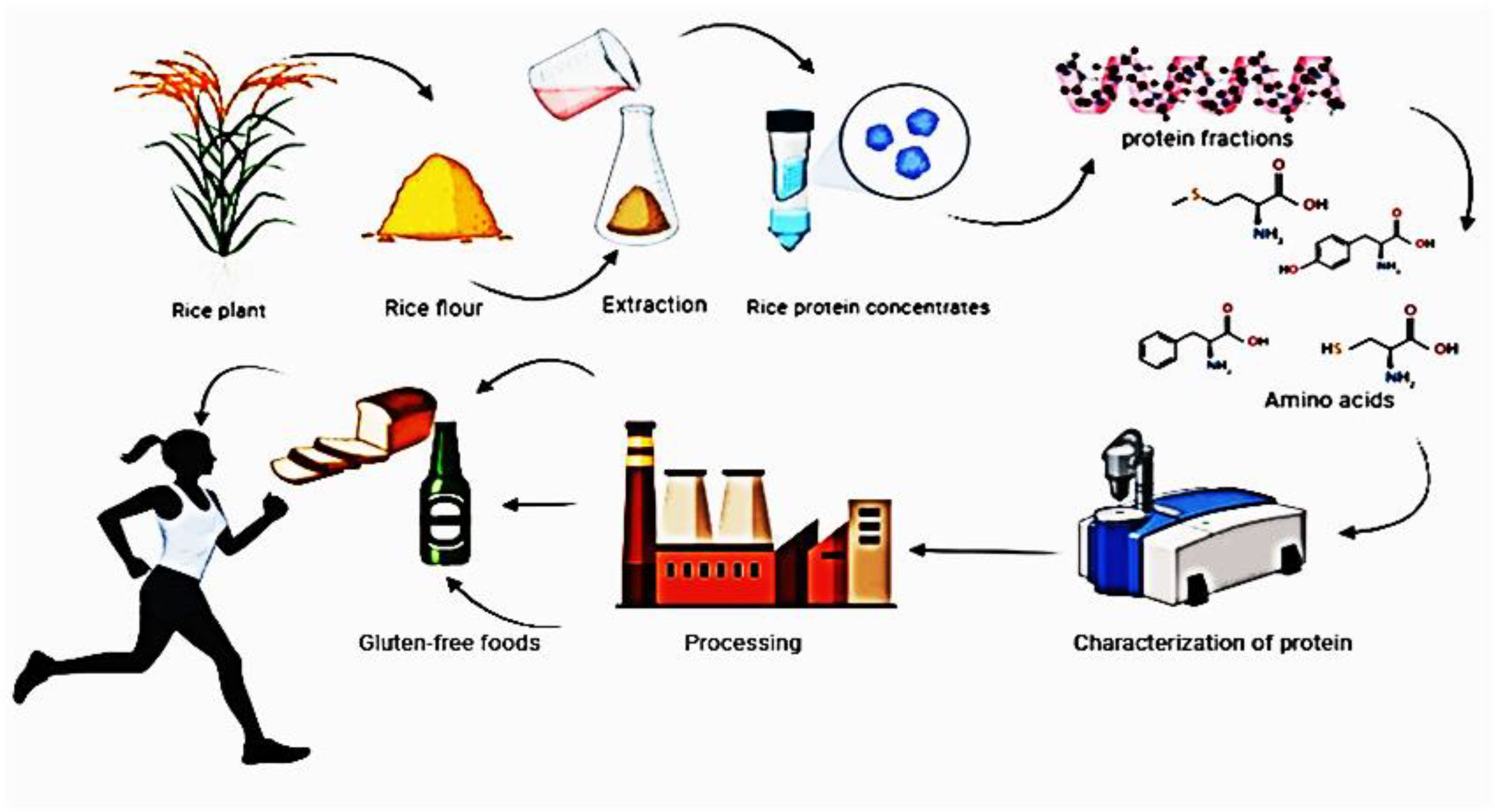 People with food allergies can use rice proteins because they are hypoallergenic and readily digested. They contain essential amino acids, though lysine is limited (Jayaprakash et al., 2022) (Meza et al., 2024). Rice contain B vitamin (e.g., thiamine and niacin) and minerals like magnesium, phosphorus, and selenium (Hoque et al., 2023). These nutrients support metabolic, bone health, and immune function. Found in rice bran, Phytosterols assist in lowering cholesterol levels and minimizing the risk of cardiovascular disease (Liu et al., 2023).