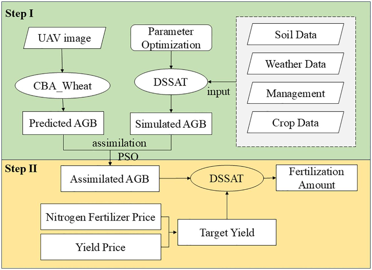 Figure 3. Flowchart of N fertilization recommendation based on a data assimilation system. AGB, aboveground biomass; PSO, particle swarm optimization.