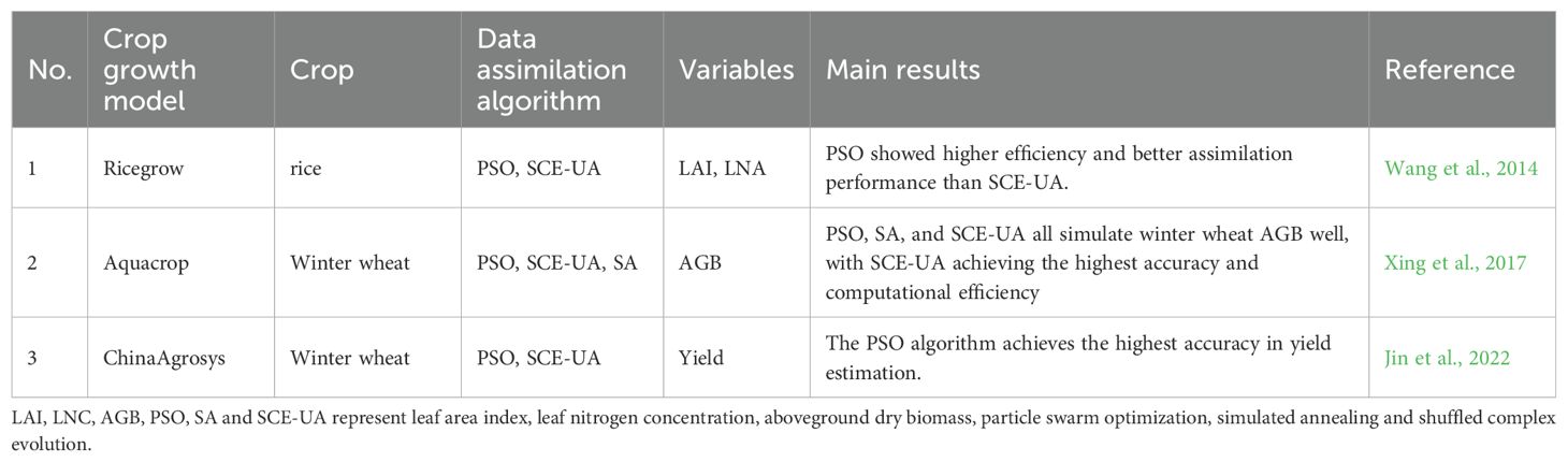 Huang, J., Song, J., Huang, H., Zhuo, W., Niu, Q., Wu, S., et al. (2024). Progress and perspectives in data assimilation algorithms for remote sensing and crop growth model. Sci. Remote Sens. 100146.