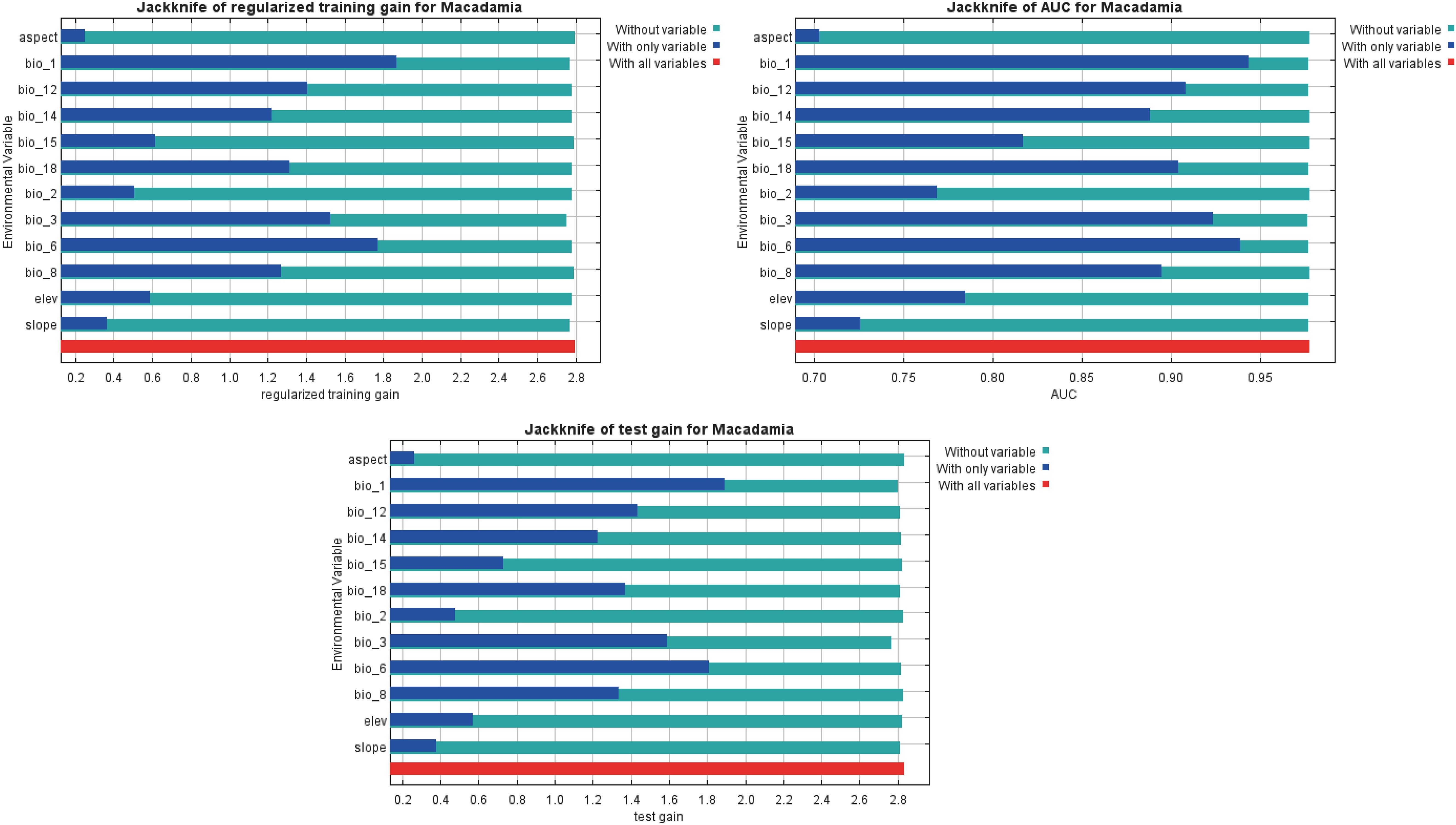 Figure 4. Jackknife test of the optimized MaxEnt model.