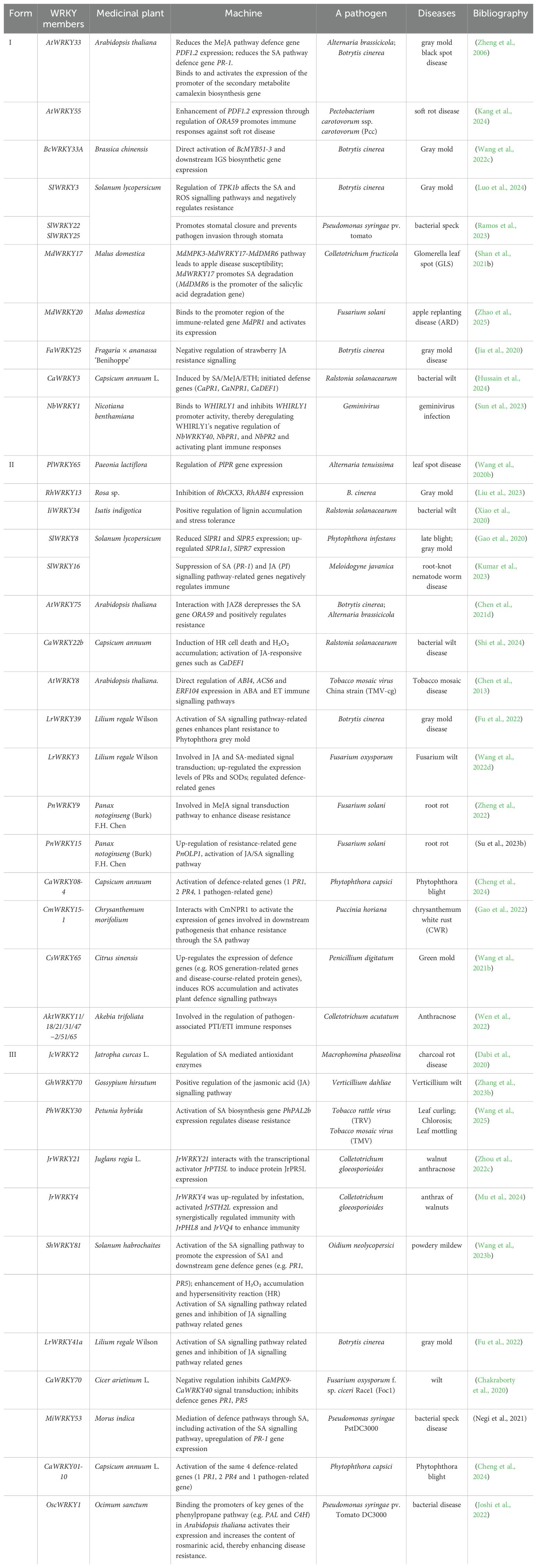Table 1. Classification of medicinal plant WRKY transcription factors and their mechanism of action in plant immunity.