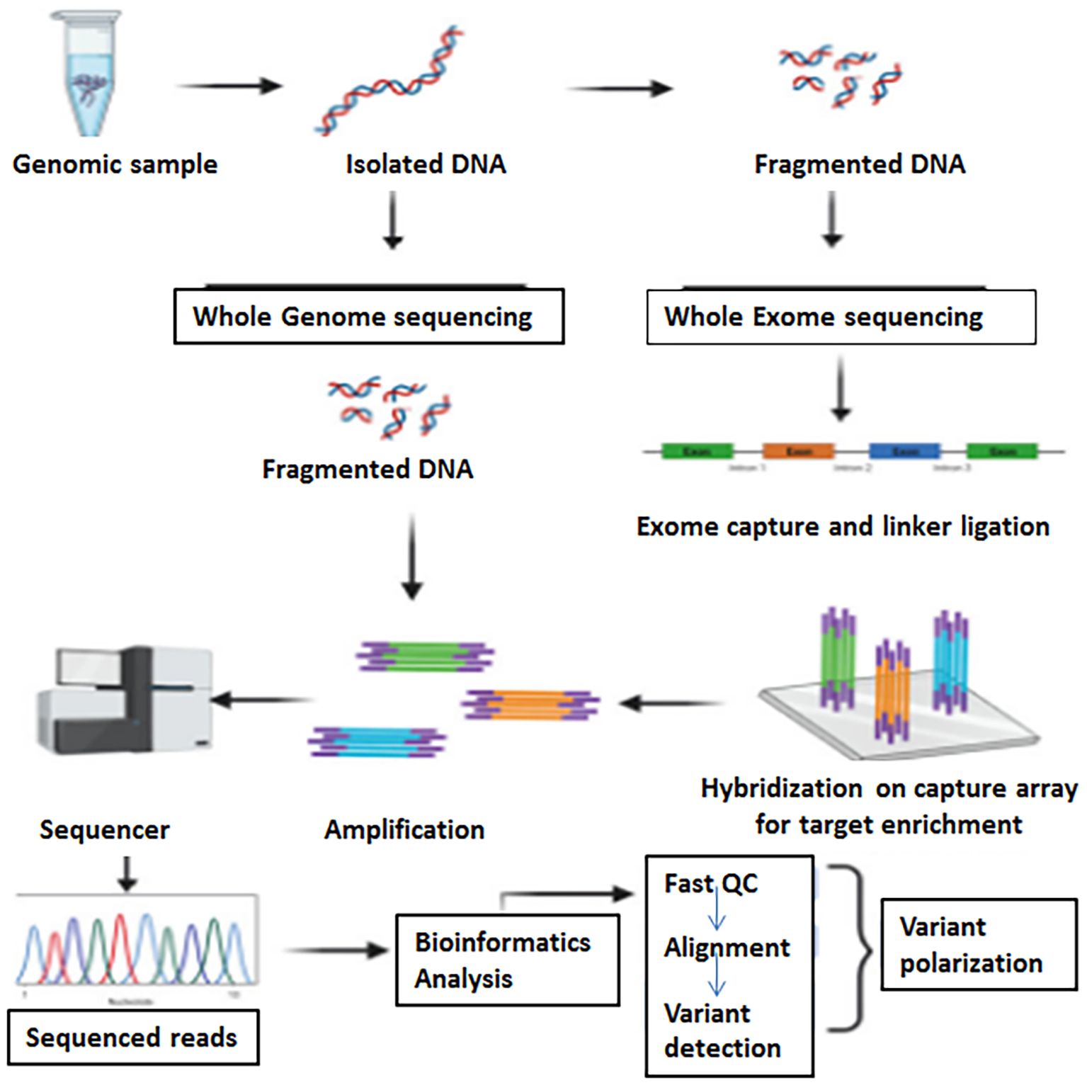 Figure 1. A schematic representation of whole genome and whole exome sequencing workflow (Adapted from Prasad et al., 2021).
