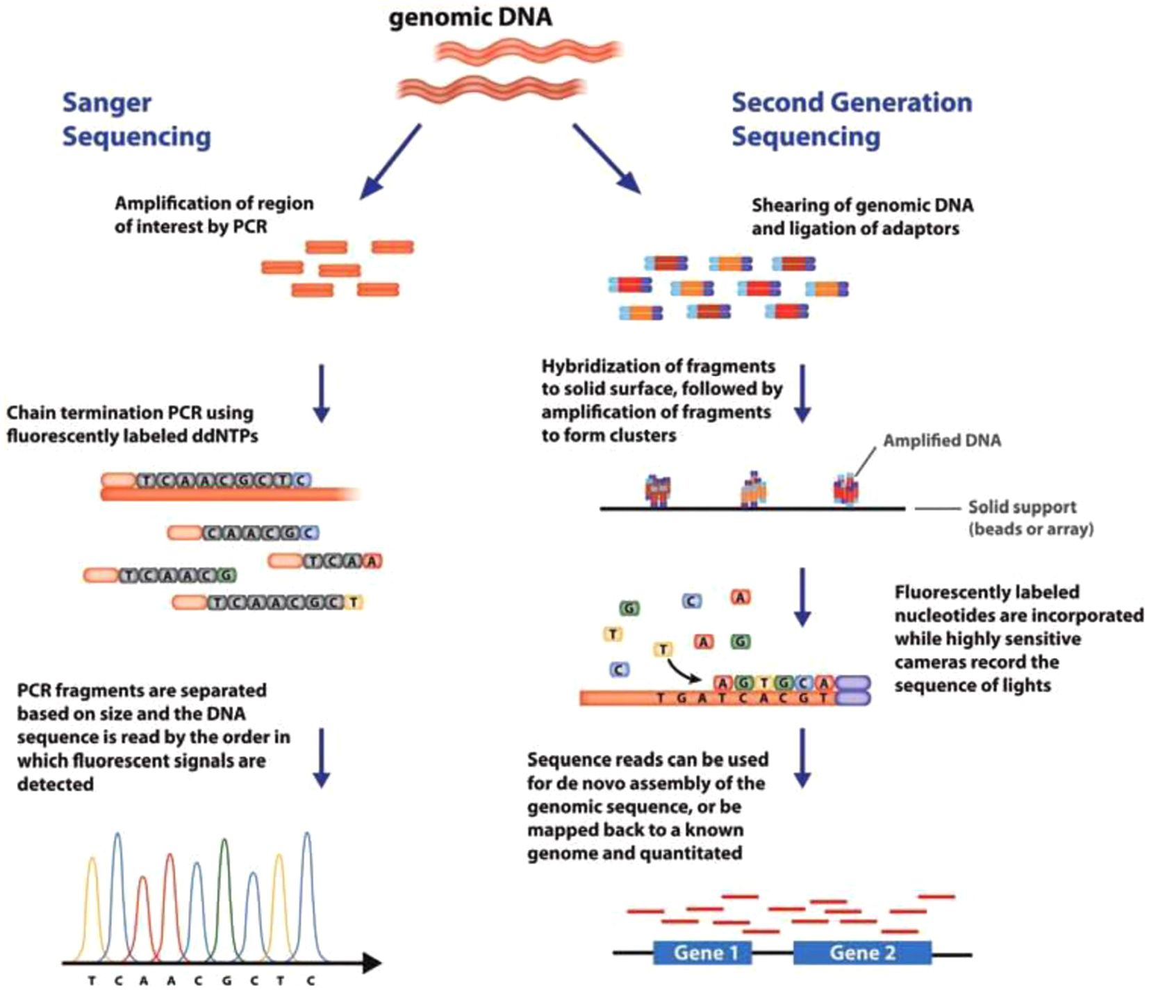 Figure 2. Comparison between Sanger sequencing and next-generation sequencing (NGS) technologies (Adopted from Bunnik and Le Roch, 2013).
