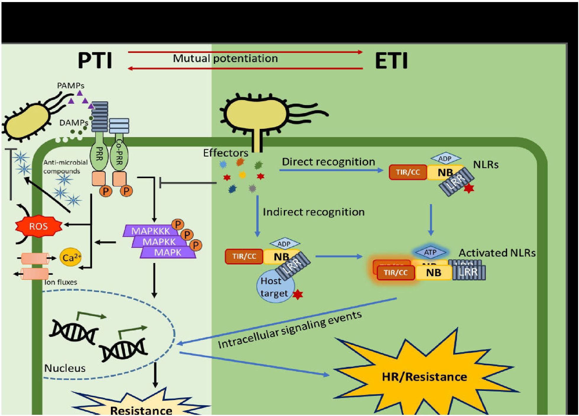 Figure 3. Schematic view of pattern-triggered immunity (PTI) and effector-triggered immunity (ETI) in plants (Adapted from Nguyen et al., 2021).