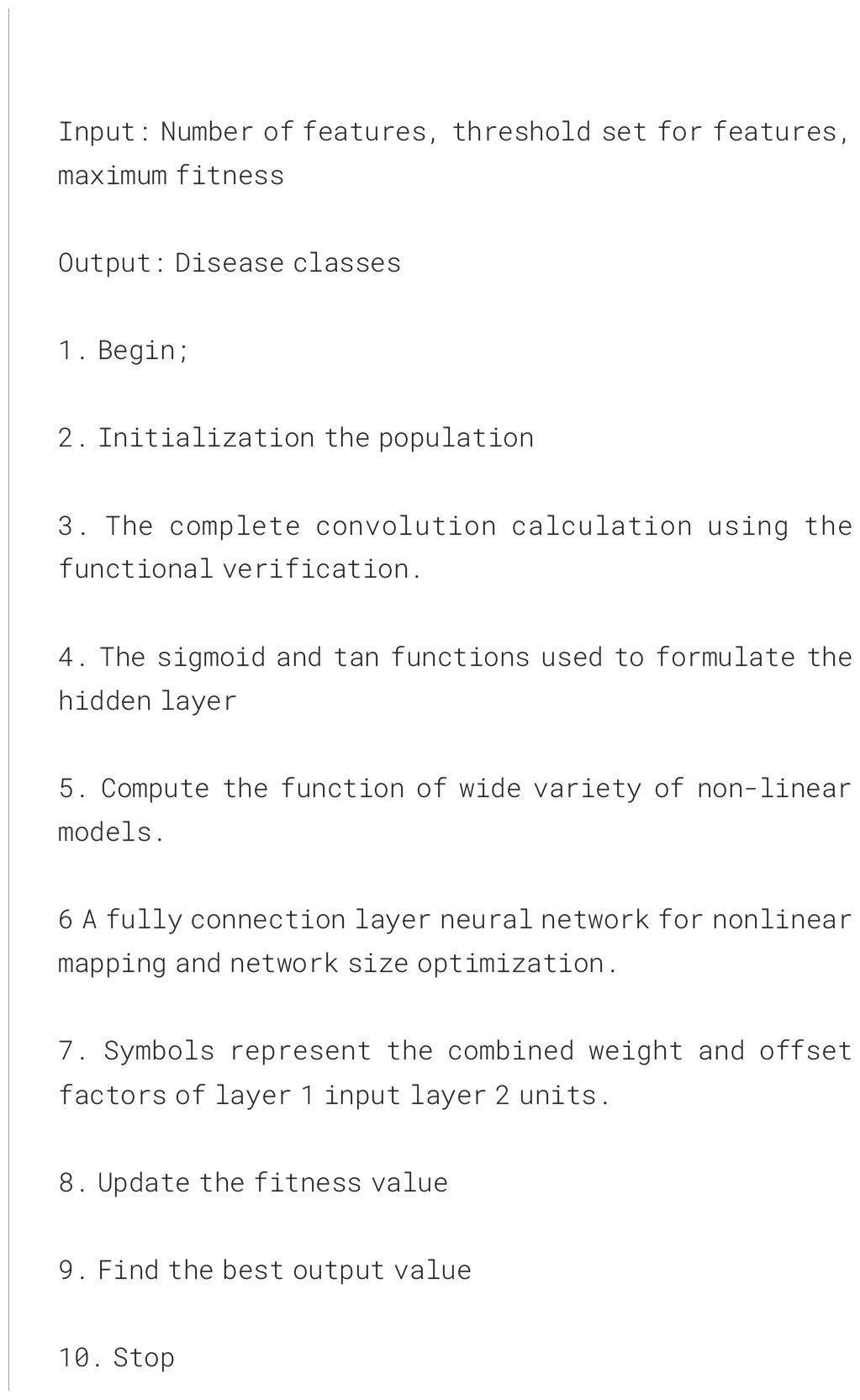 is the numeral of coatings in the neural net, h for the input layer, and for the output layer. The system’s main issue is the willpower of the excitation value at each buried layer in the neural system forward spread. Algorithm 3 describes how to use DSKO for leaf disease detection and categorization.