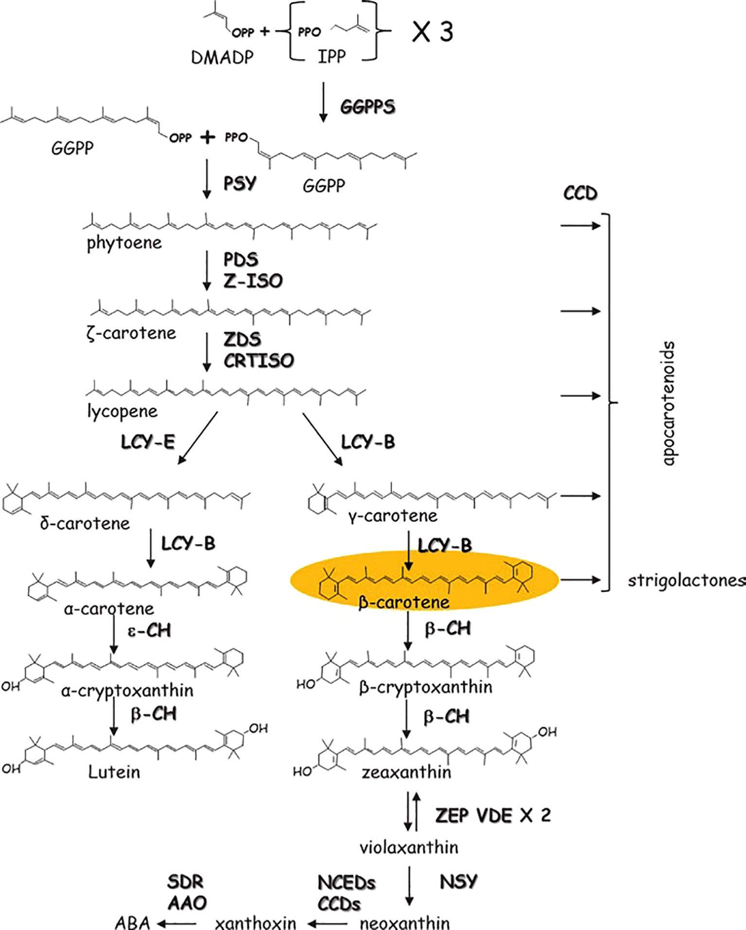 Zhou, X., Rao, S., Wrightstone, E., Sun, T., Lui, A. C. W., Welsch, R., et al. (2022). Phytoene synthase: the key rate-limiting enzyme of carotenoid biosynthesis in plants. Front. Plant Sci. 13, 884720. doi: 10.3389/fpls.2022.884720