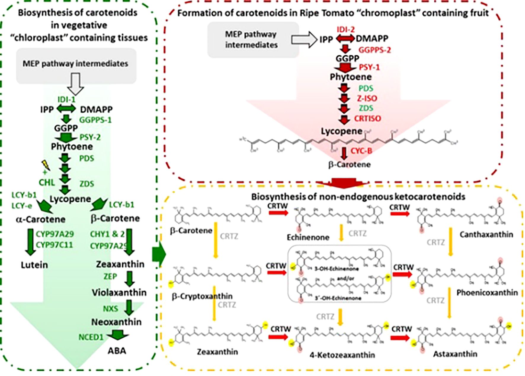 Figure 5. Biosynthesis of carotenoids in tomato chloroplast and chromoplast (Enfissi et al., 2019).
