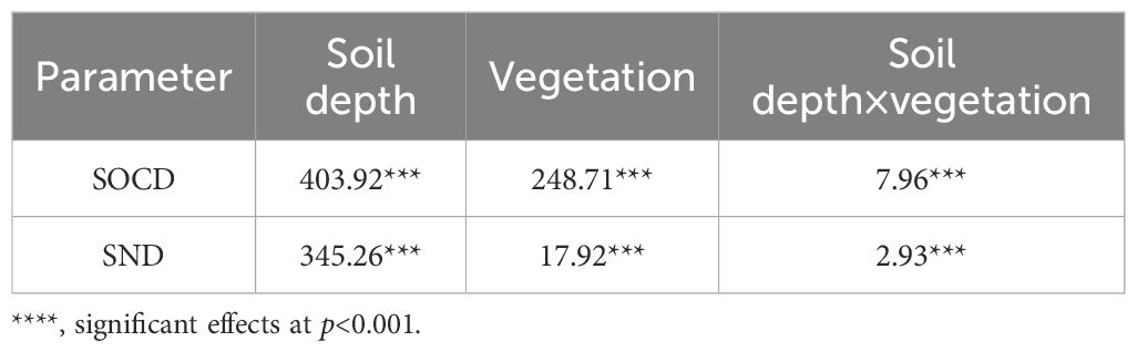 Finally, the results showed that the composition and structure of the litter layer were closely related to vegetation characteristics. LB was in turn a significant factor affecting SOC, SOCD, N and SND of vegetation areas (Table 4).