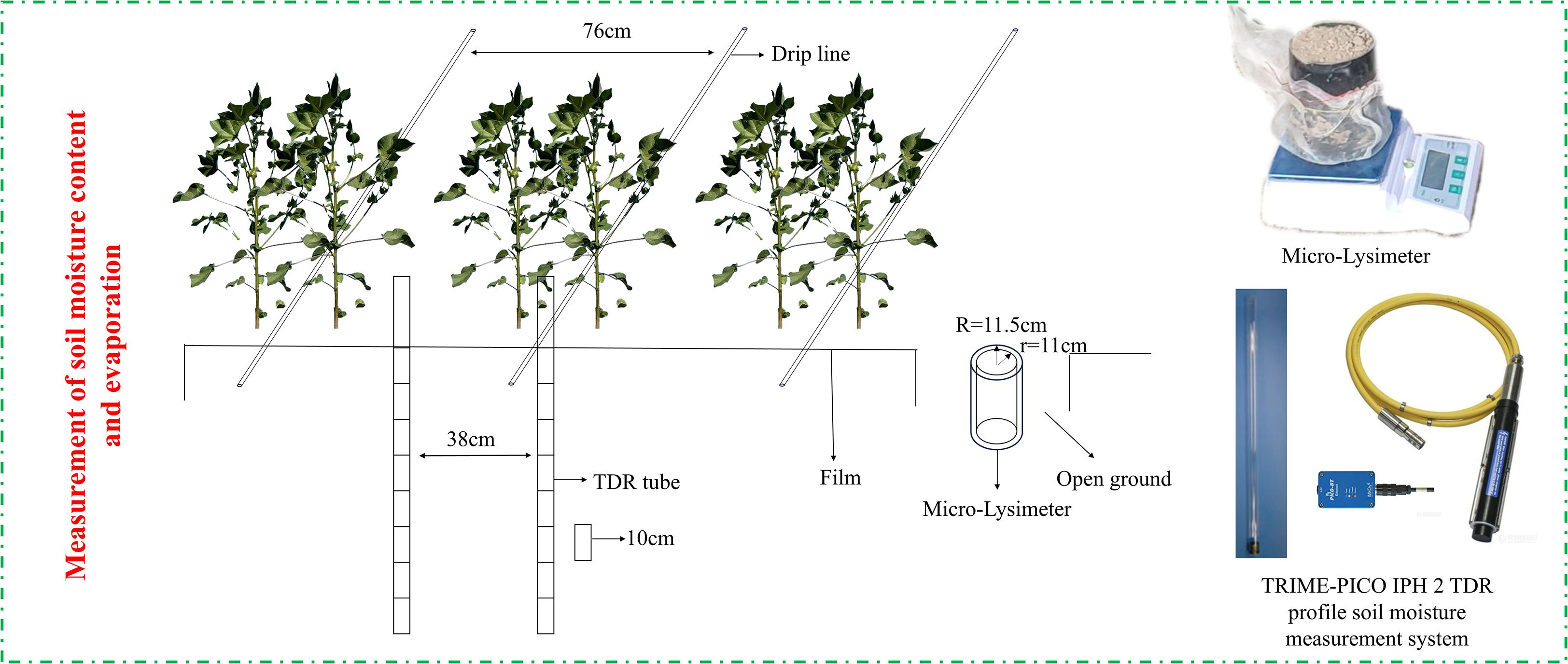 At the whole cotton field scale, the average soil evaporation (Es) was computed by incorporating the weighted ground cover rate (Fm) (Ding et al., 2013; Qin et al., 2018).