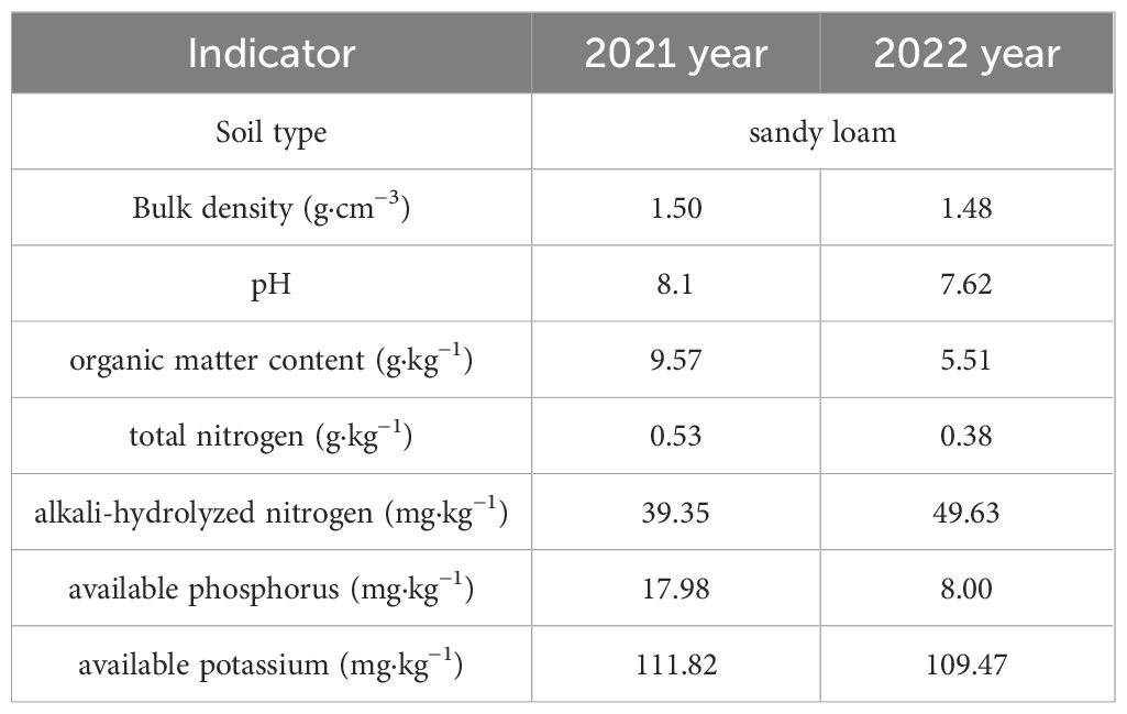 Table 1. The fundamental physicochemical properties of the soil in the experimental field prior to cotton sowing.