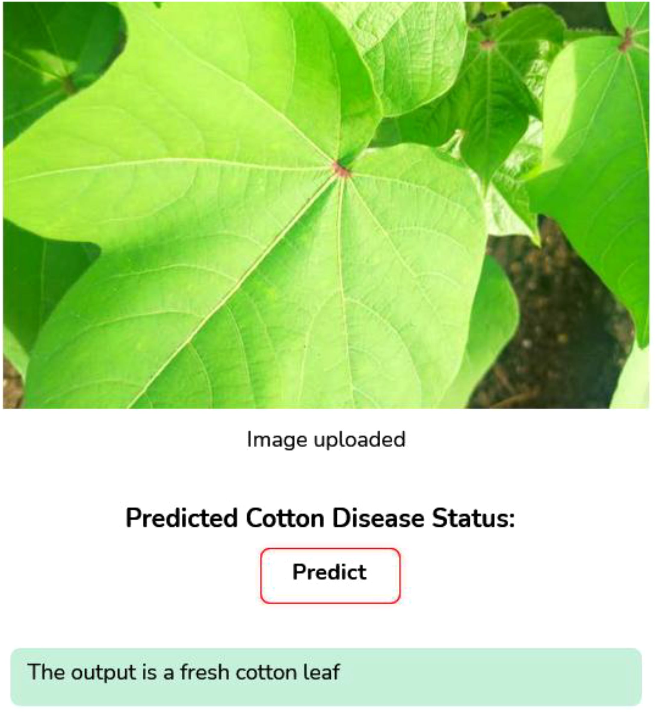 ● User Interface Design: A web page is created to allow users to upload cotton plant images.