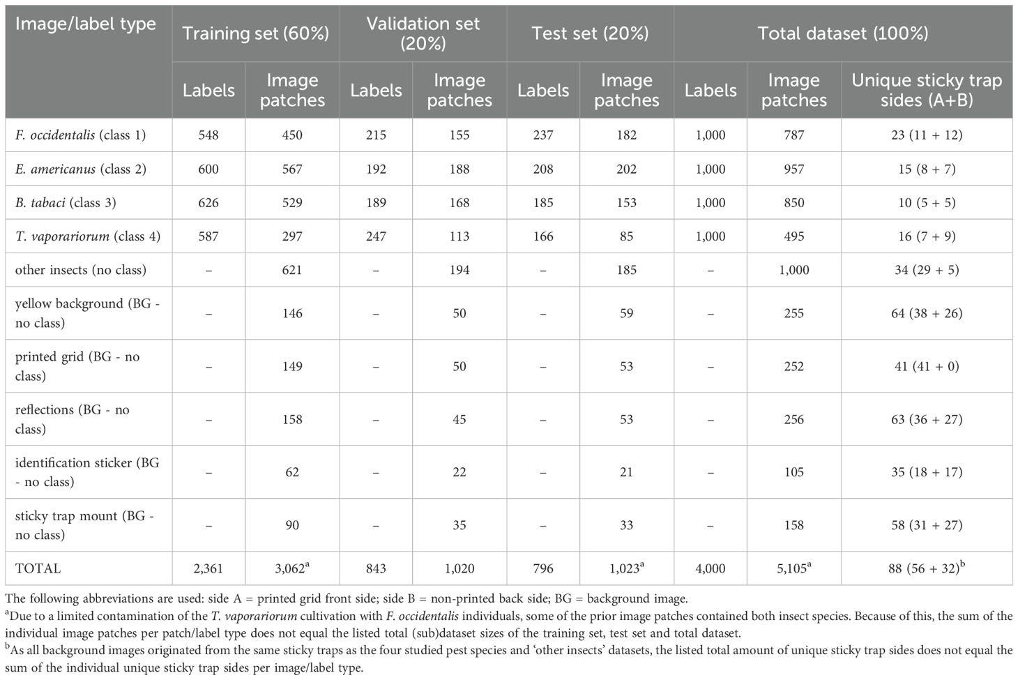 Table 2. Detailed composition of the high-resolution (pixel size: 5 µm) internal dataset, consisting of yellow sticky trap image patches.
