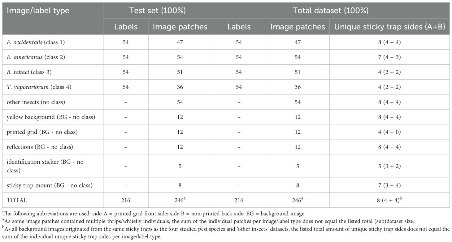 Table 3. Detailed composition of the high-resolution (pixel size: 5 µm) external dataset, consisting of yellow sticky trap image patches.