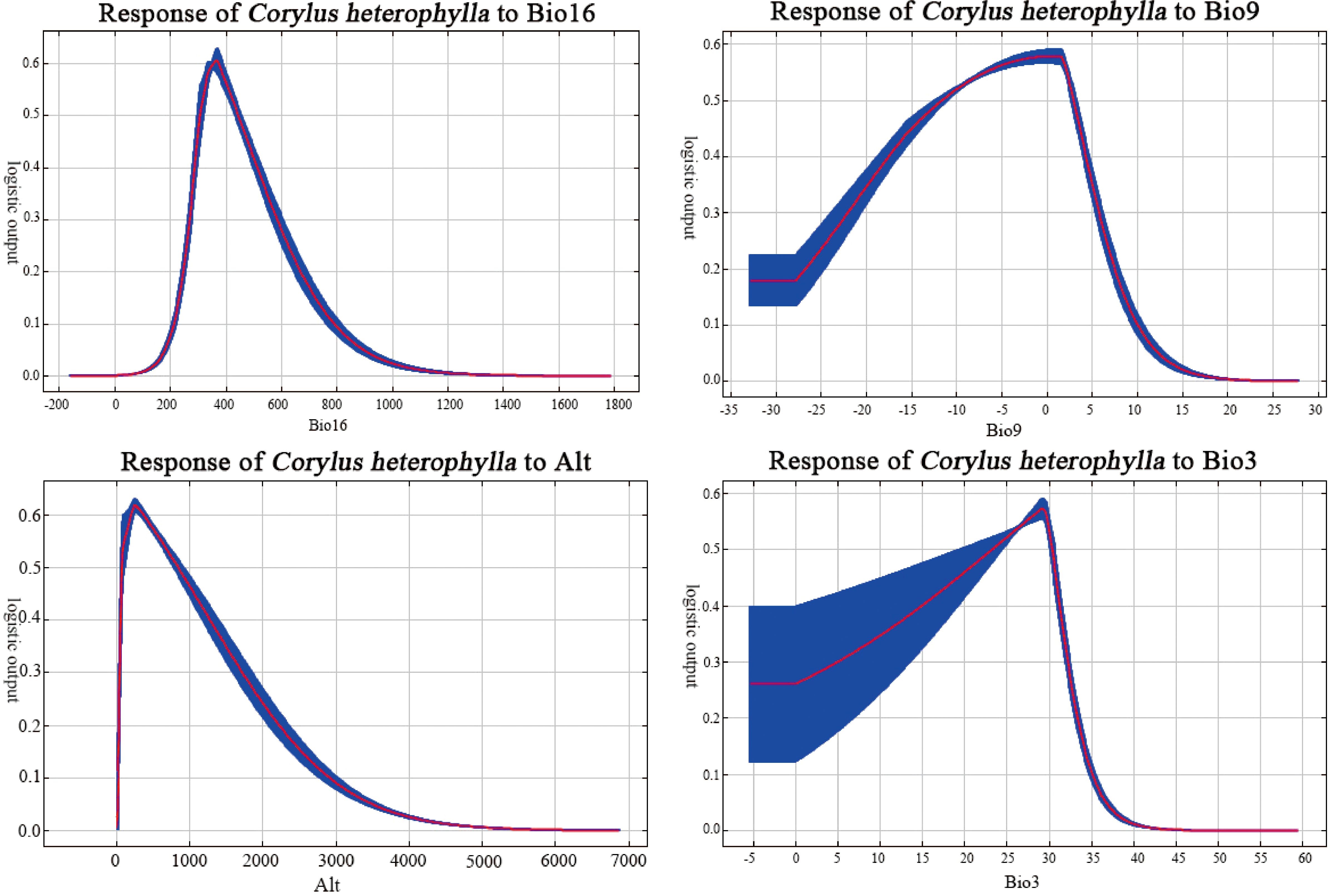 Corylus heterophylla Fisch. ex Trautv. (C. heterophylla), an ecologically and economically significant species within Corylus (Betulaceae), dominates northeastern, northwestern, and northern China’s mountainous forests (Cheng et al., 2019). Its extensive root system mitigates soil erosion, contributing to vegetation restoration and ecosystem rehabilitation (Wang et al., 2025). Current research on C. heterophylla emphasizes phenotypic traits (Fan et al., 2020), genetic diversity (Yang et al., 2023), and cultivation techniques (He et al., 2023), with limited focus on its ecological niche requirements. Previous research on Corylus distribution has often examined C.xheterophylla as part of broader species groups. For instance, Liu and Chen (2024) modeled the potential distribution of 18 hazel species across China under current and future climate scenarios, integrating climatic, topographic, and anthropogenic variables. In a related effort, He et al. (2023) reconstructed the historical distribution changes of the C. heterophylla complex since the Last Interglacial. While these studies offer valuable macro-scale insights, the ecological distinctiveness of C. heterophylla may not be fully resolved in multi-species or complex-level analyses due to potential niche overlap among congeners. Species-specific distribution modeling helps minimize such interspecific interference and is essential for accurately capturing a target species’ unique climatic responses and spatial patterns. It also forms the basis for developing tailored conservation and sustainable management strategies. Therefore, this study focuses exclusively on C. heterophylla to clarify its niche characteristics and response mechanisms to critical environmental factors—addressing an important gap in fine-scale, single-species distribution modeling under future climate scenarios.