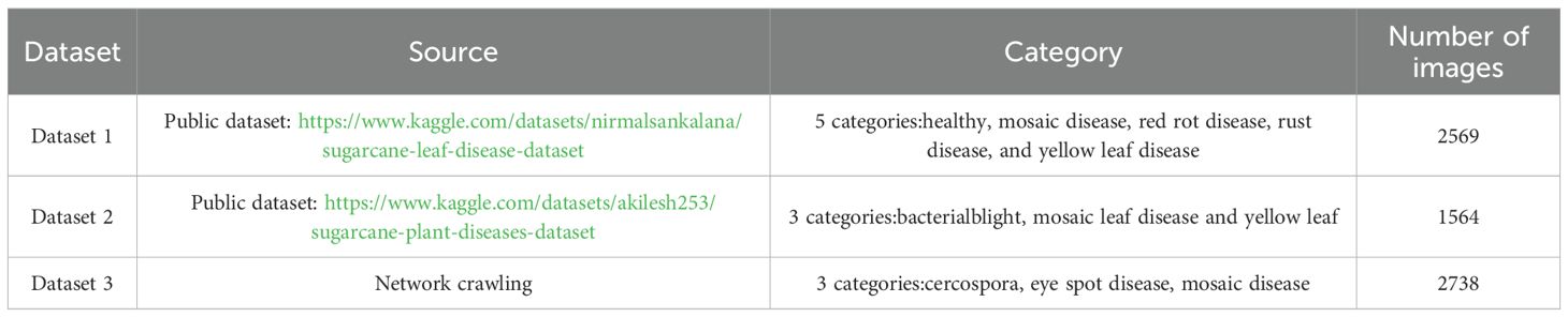 However, in the process of sugarcane cultivation, disease issues have become a significant factor constraining its industrial development. Existing research has shown that plant diseases are one of the key factors threatening crop productivity and quality. Globally, 20%-40% of agricultural productivity losses are caused by plant diseases (Qaadan et al., 2025). Specifically in sugarcane cultivation, the occurrence of diseases can have severe negative impacts on the sugarcane industry (Rott et al., 2015). Infected sugarcane plants often exhibit symptoms such as slow growth, wilted leaves, softened stems, and decreased yields. These symptoms not only significantly reduce the yield and quality of sugarcane but may even lead to plant death, causing huge economic losses to growers (Huang et al., 2018). Therefore, accurately identifying sugarcane diseases is of utmost importance. Efficient and precise disease identification can provide farmers with scientific evidence, enabling them to take effective prevention and control measures, thereby reducing economic losses, curbing the further spread of diseases, and ensuring the sustainable development of the sugarcane industry.