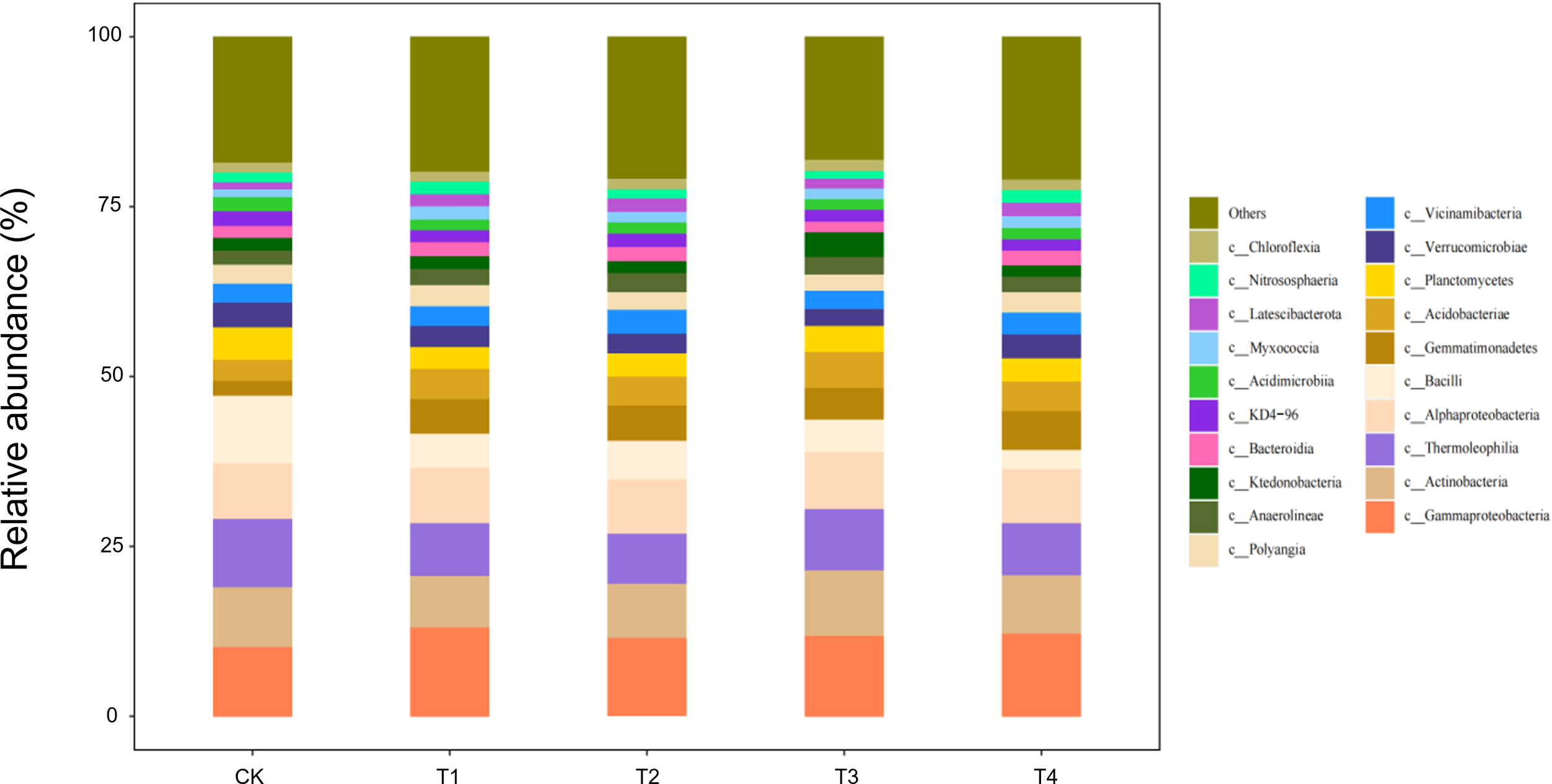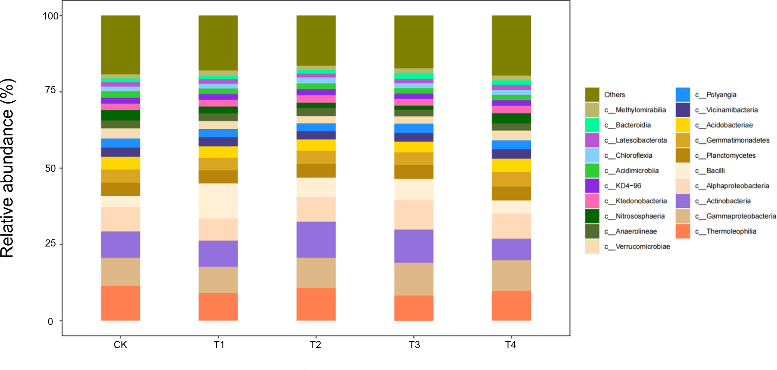 Bacterial community (class level) was characterised by sequencing of the 16S V4 region using an Illumina PE250 platform. DNA was extracted from soil samples (0–20 cm) using the E.Z.N.A. Soil DNA Kit (Omega Bio-tek, Inc., USA) according to the manufacturer’s protocol. The bacterial 16S rRNA gene V3–V4 hypervariable region was amplified using the universal primers 338F (5′-ACTCCTACGGGAGGCAGCAG-3′) and 806R (5′-GGACTACNNGGGTATCTAAT-3′). PCR amplification was performed using the following conditions: an initial denaturation at 95 °C for 5 min, followed by 28 cycles of 95 °C for 45 s, 55 °C for 50 s, and 72 °C for 45 s, with a final extension at 72 °C for 10 min. PCR products were purified and sequenced on an Illumina platform, as described by Xie et al (Xie et al., 2025).