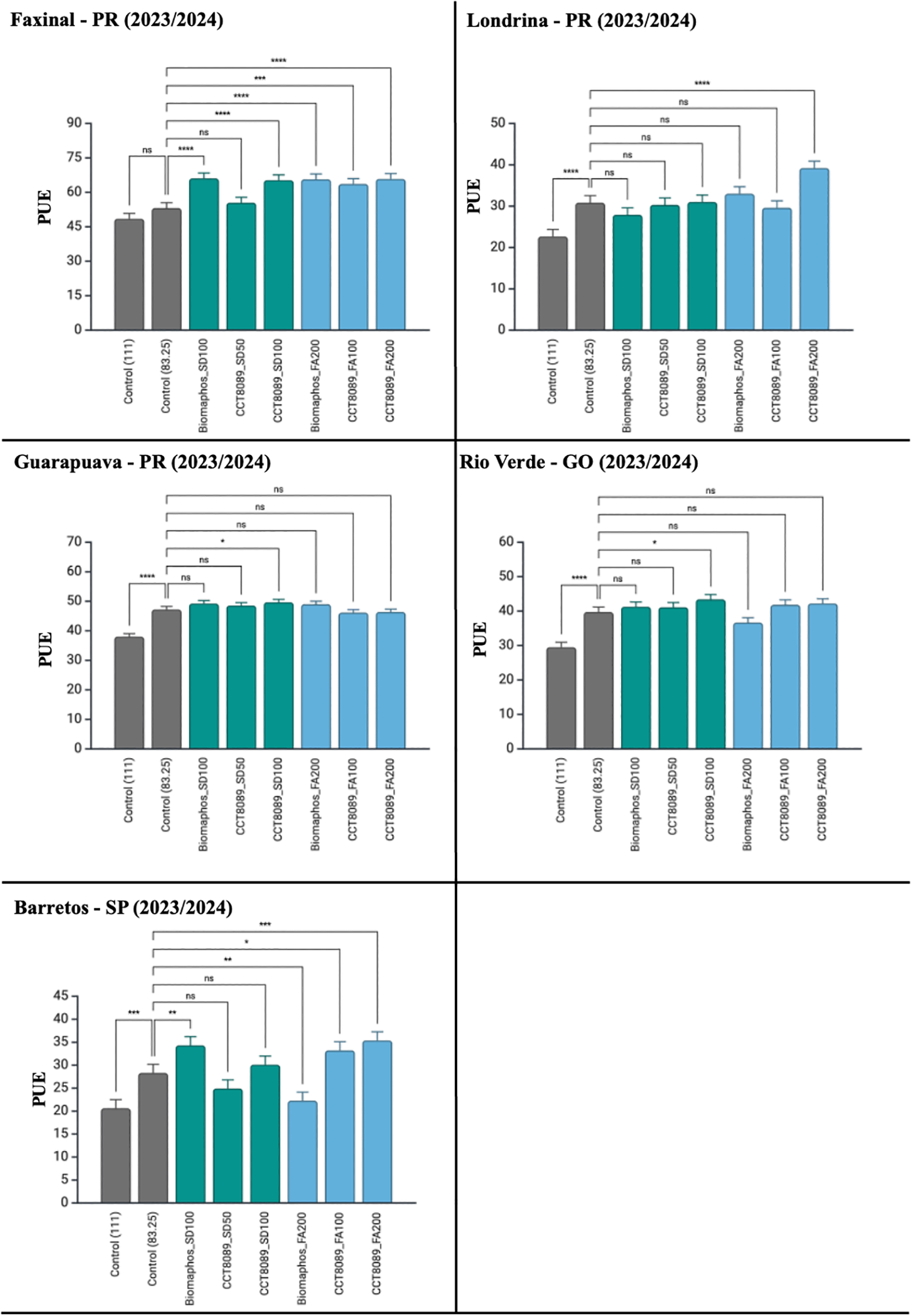 Several approaches have been developed to enhance phosphorus use efficiency (PUE) in agriculture. Among the adopted strategies, the development of cultivars with greater phosphorus use efficiency stands out, as these plants demonstrate a higher capacity for P uptake and utilization (Lambers, 2022; Pavinato et al., 2024). Precision agriculture techniques, which adjust the dosage, placement, and timing of fertilizer application, are also crucial for optimizing P absorption and minimizing losses due to fixation and leaching (Bindraban et al., 2020; Silva et al., 2024). Additionally, practices that promote soil health, such as the addition of organic matter and the use of microbial inoculants that solubilize phosphorus, have shown a positive effect in increasing P availability (Mosela et al., 2022; Raniro et al., 2023).