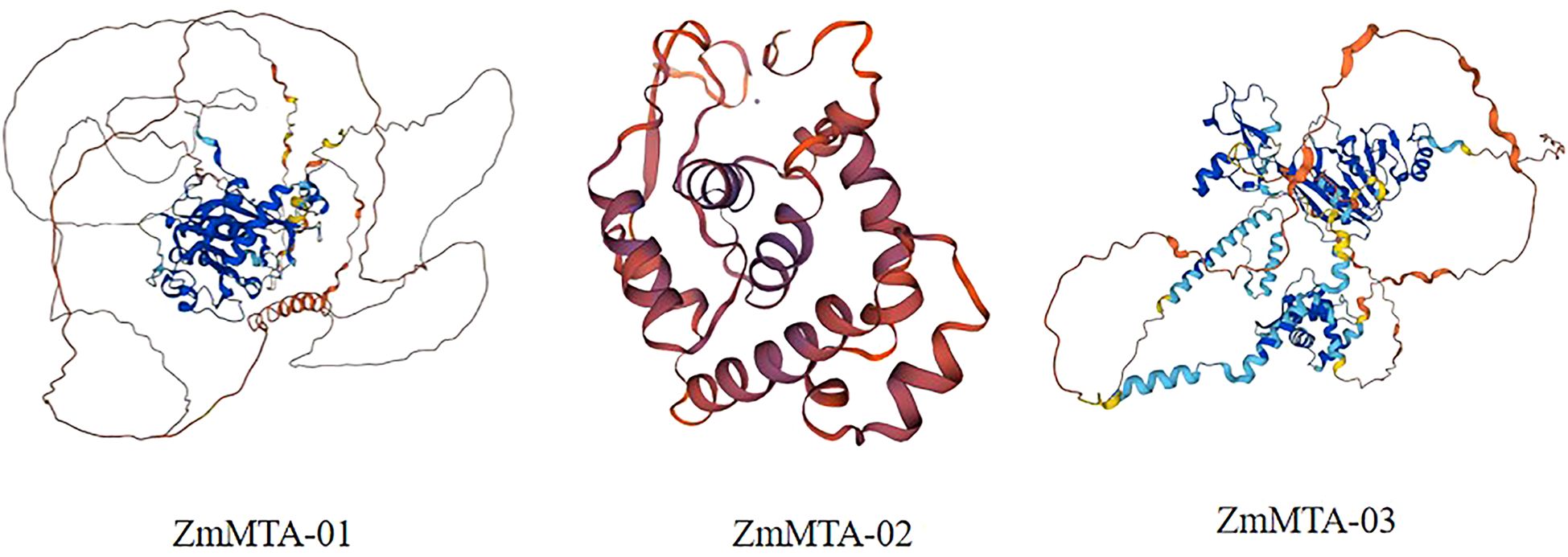 Figure 8. The tertiary three-dimensional structure of three ZmMTA proteins was identified within the maize genome.