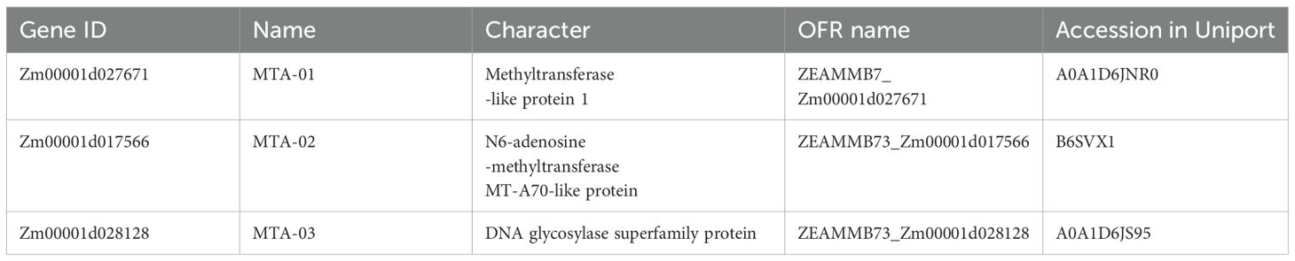 Table 2. Summary of physicochemical properties and subcellular localization of m6A-related genes in maize.