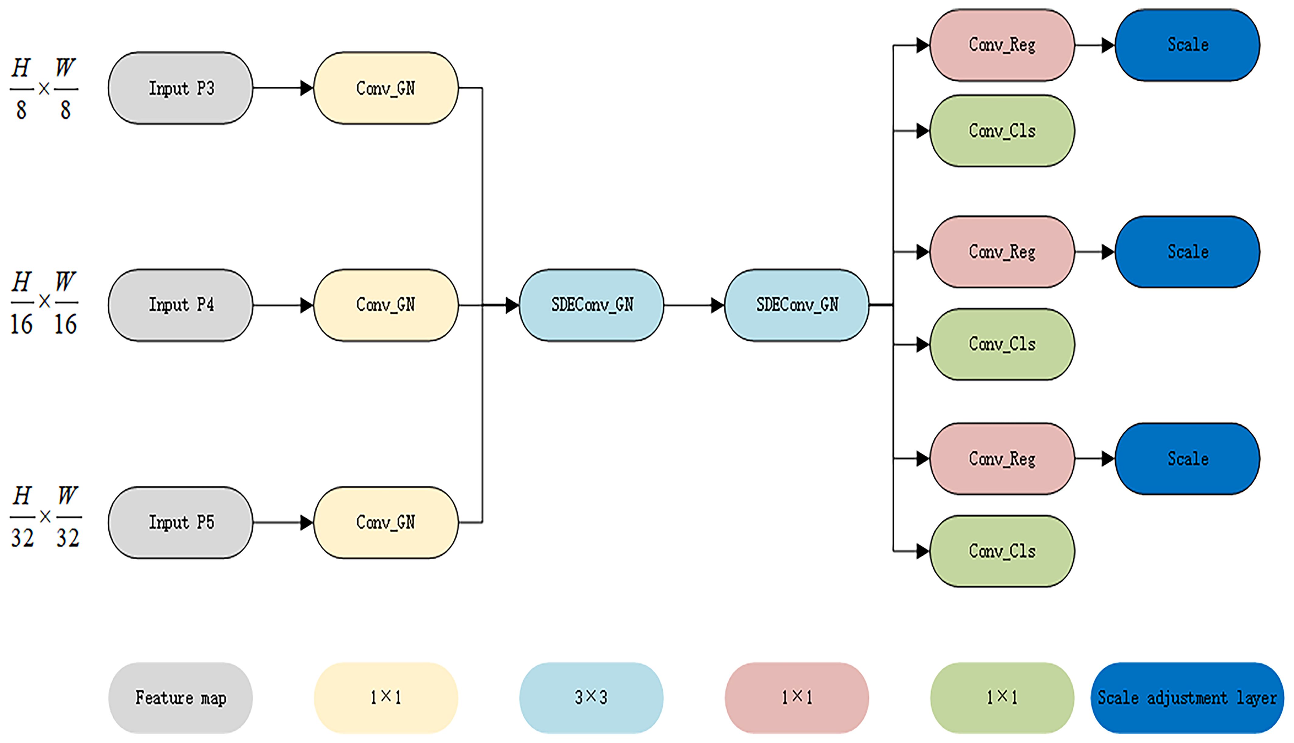 3) YOLO-PFL replaced the traditional YOLO head with an LSDECD (Lightweight Shared Detail Enhanced Convolutional Detection Head) module (Sun et al., 2025). As shown in Figure 8, which illustrated the structure of the LSDECD module, a detail-enhanced convolution (DEConv) was designed to integrate prior information into the regular convolution layer, improving representation and generalization capabilities. Through re-parameterization techniques, DEConv was transformed into a regular convolution, eliminating the need for additional parameters and computational costs. This design made the model suitable for deployment on terminal devices with limited computing resources.