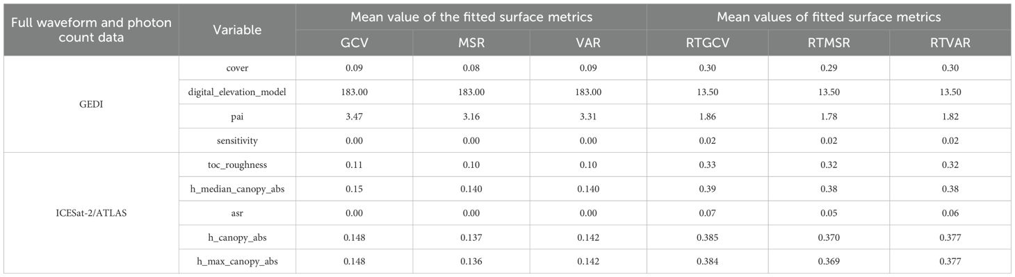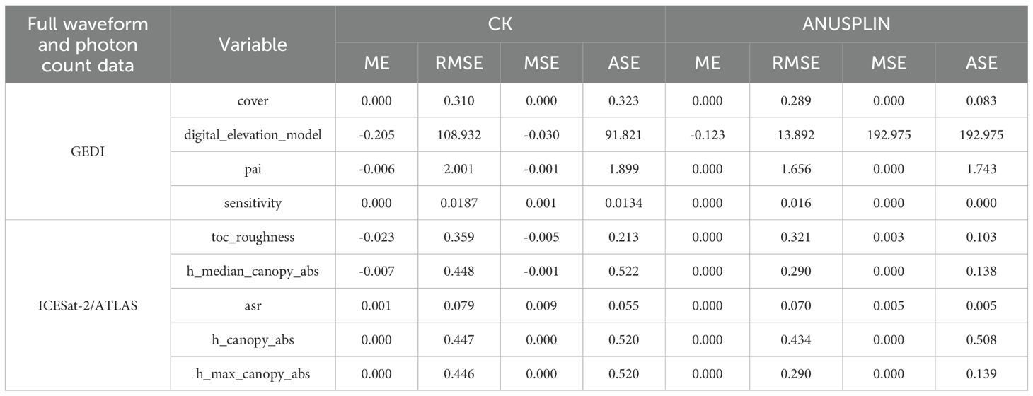 Table 2. Statistical characteristics of ANUSPLIN interpolation output for GEDI and ICESat-2/ATLAS data.