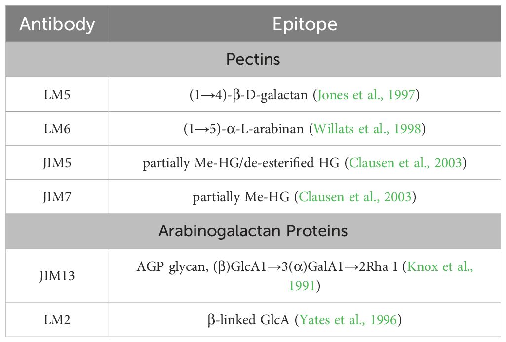 Willats, W. G. T. and Knox, J. P. (1999). Immunoprofiling of pectic polysaccharides. Analytical Biochem. 268, 143–146. doi: 10.1006/abio.1998.3039