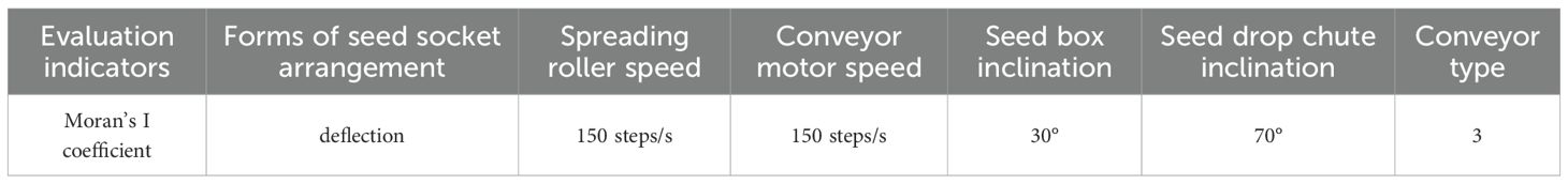Among all trials, Experiments 14 and 15 produced the most satisfactory outcomes, with mean Moran’s I values approaching zero, indicating highly uniform seed distribution. In contrast, Experiments 4, 7, 13, and 16 exhibited severe seed adhesion and occlusion, with significantly higher mean Moran’s I values. Experiments 1, 8, 9, 10, and 18 showed scattered or sparse seed distributions, with average Moran’s I values mostly exceeding 0.2.
