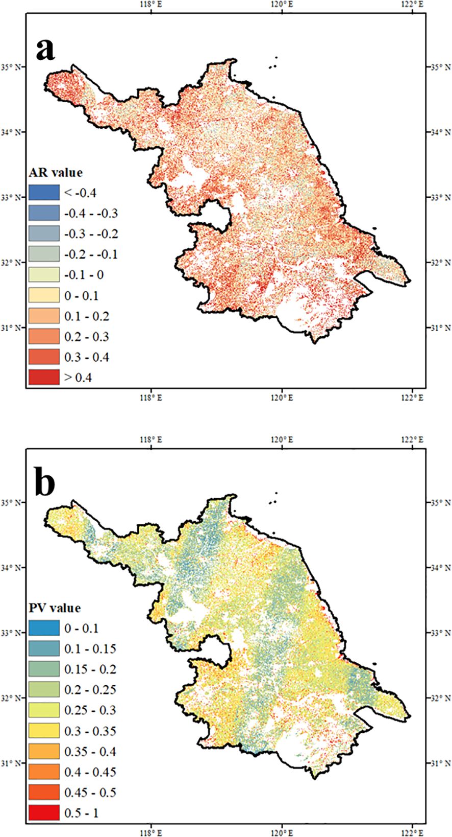 2. ΔAR and ΔPV were normalized by dividing each value by the maximum absolute value of the respective variable across all pixels;