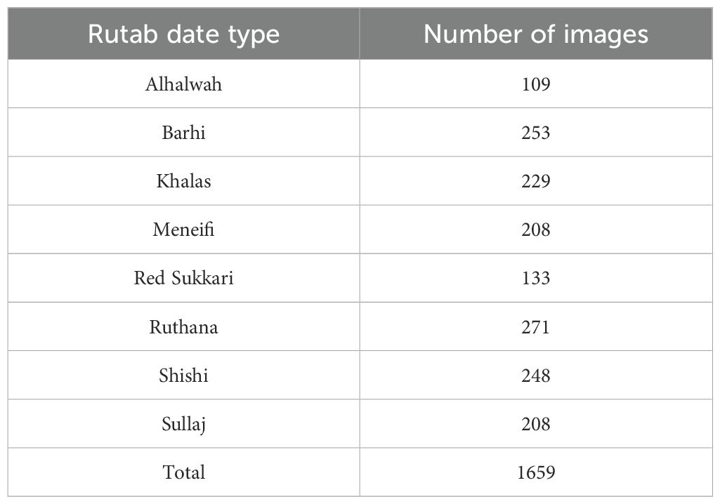 Table 2. Distribution of the 1659 images in our collected dataset across the eight Rutab date varieties.