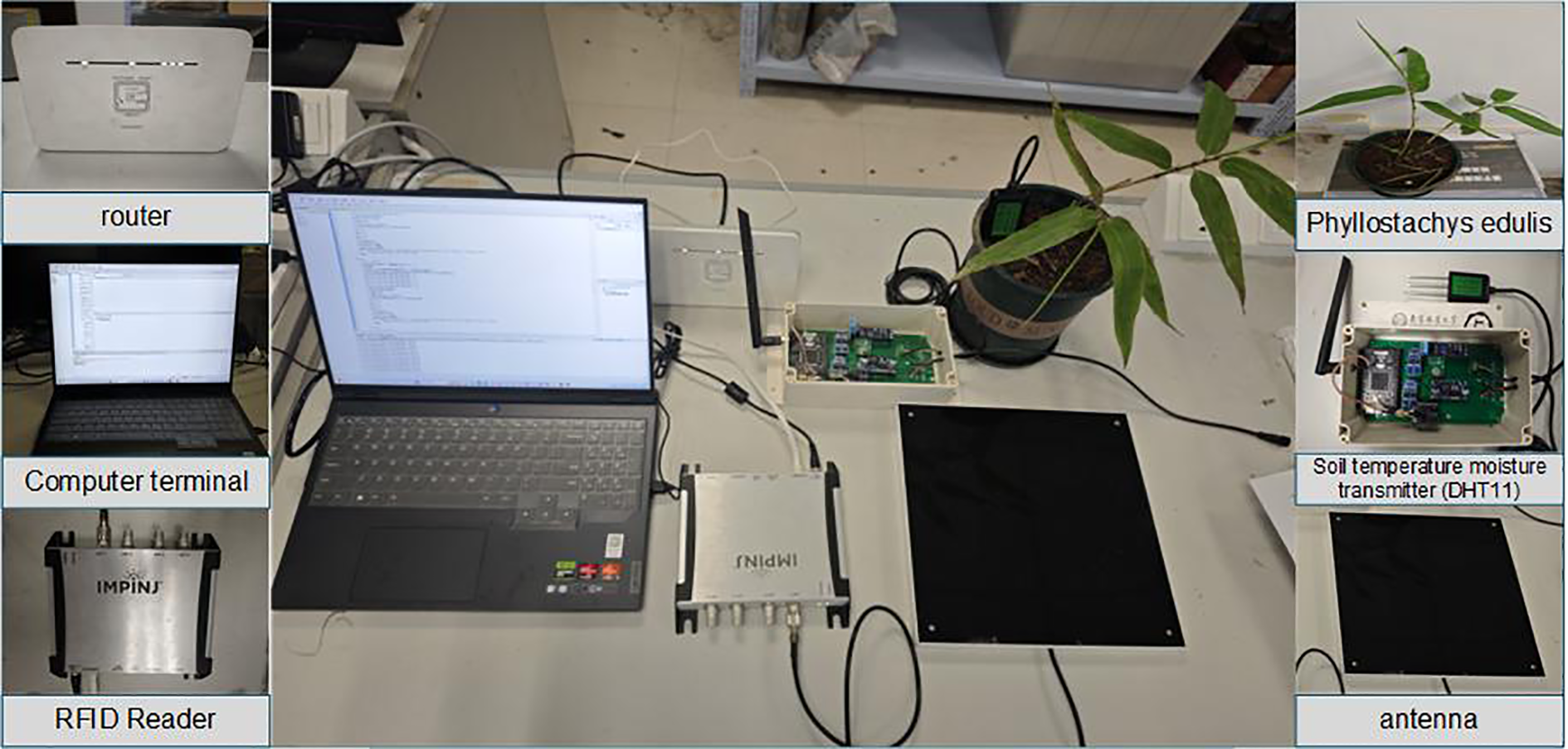 The evolution of non-destructive detection technologies has catalyzed breakthrough advancements in plant stress diagnostics. Although existing detection methods still face technical bottlenecks such as high cost, limited applicability, insufficient precision, and elevated energy consumption, the rise of Internet of Things (IoT) technology offers new pathways to overcome these challenges. Notably, Radio Frequency Identification (RFID) technology, leveraging its mature IoT application framework, demonstrates significant advantages in agricultural and forestry sectors (Daskalakis et al., 2019). This technology enables non-invasive, real-time status perception and data acquisition from monitored objects through wireless communication between radio frequency signals and electronic tags. Its efficient and precise data processing capabilities provide an innovative solution for non-destructive crop monitoring (Costa et al., 2021).