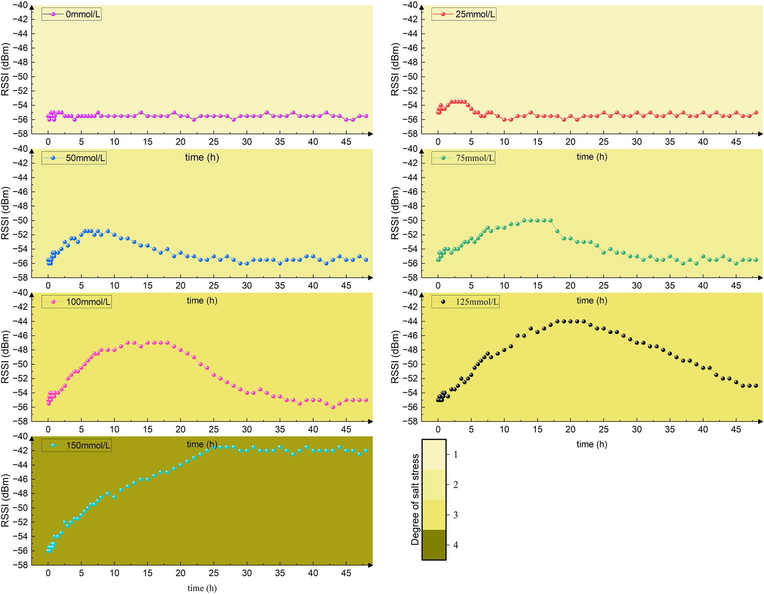 Based on the research objectives, we propose the following preliminary hypotheses and corresponding validation strategies:(1) Salt stress alters the osmotic pressure gradient across leaf blade cell membranes of Phyllostachys edulis, thereby modifying its dielectric properties. This dielectric variation can serve as an indicator for quantifying salt stress intensity;(2) UHF radiofrequency signals exhibit high sensitivity to dielectric property fluctuations. By quantifying RF signal characteristics such as RSSI and phase, dynamic variations in the dielectric properties of Phyllostachys edulis leaves can be inferred, enabling accurate classification of salt stress levels.