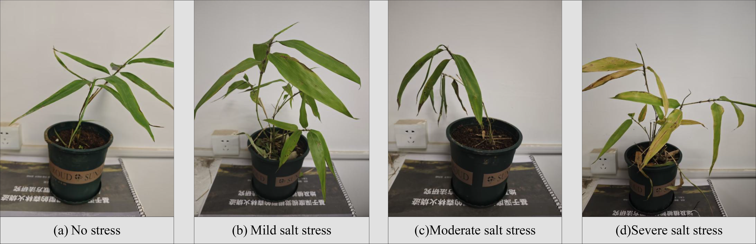 Traditional methods for salt stress assessment predominantly rely on destructive sampling, hindering dynamic monitoring and limiting data acquisition frequency. Consequently, they fail to comprehensively capture the transient physiological changes and long-term adaptation processes in Phyllostachys edulis under salt stress. Furthermore, while controlled laboratory experiments enable precise regulation of salt concentration and stress duration, they struggle to fully replicate the complex and variable environmental conditions encountered in the field. Natural factors such as soil type, microbial communities, and climatic variations cannot be adequately reproduced, thereby compromising the ecological validity of the research findings.