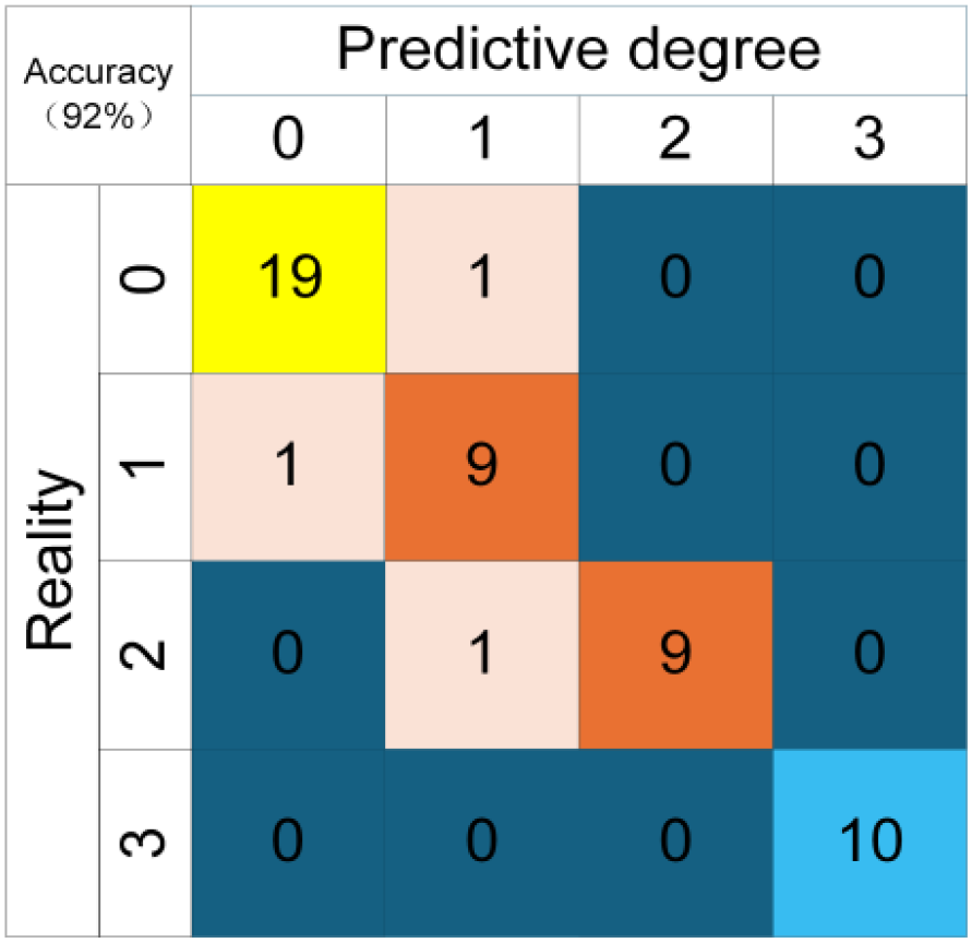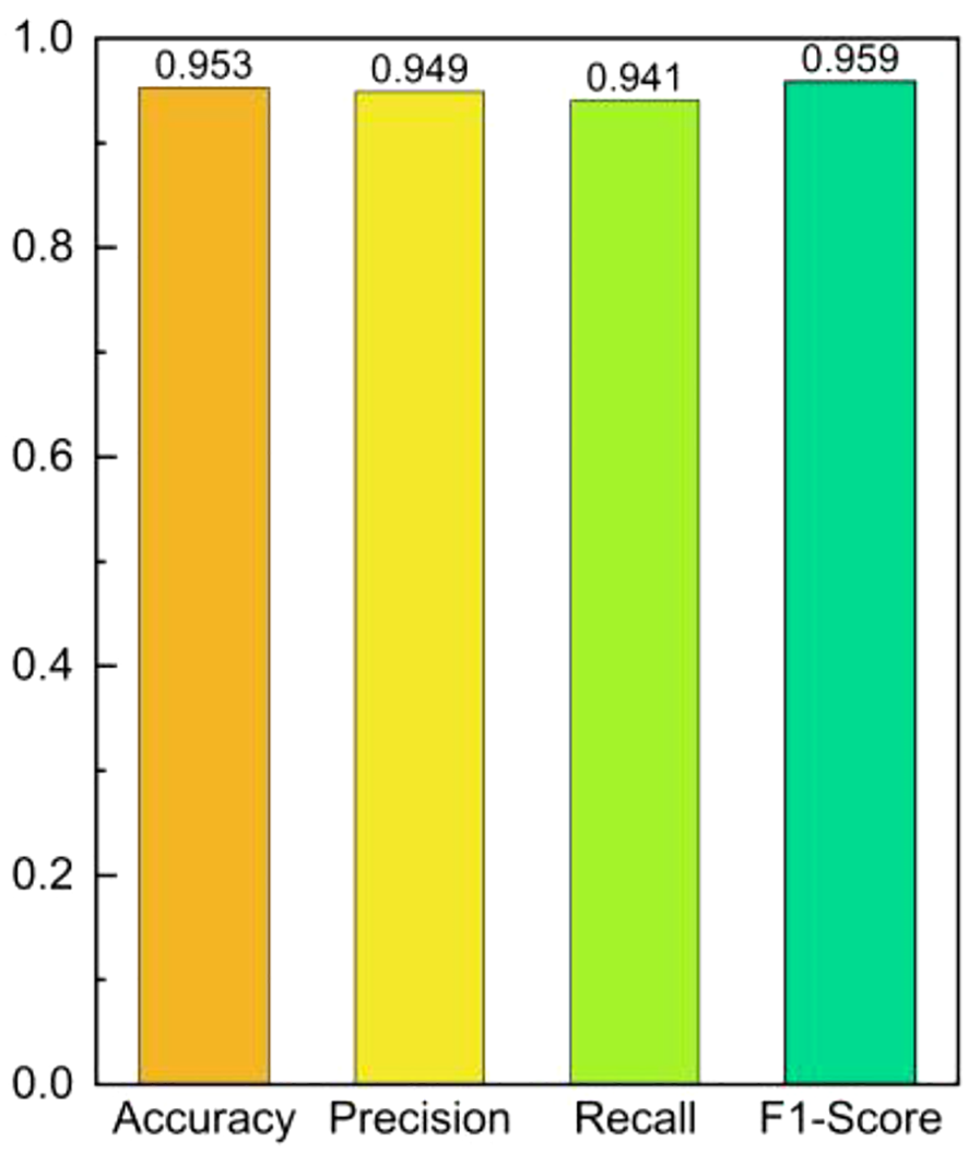To address the challenge of limited sample size and to more robustly evaluate the generalization performance of the classification model, a k-fold cross-validation analysis was supplemented in this study. The specific process was as follows: the entire dataset was randomly partitioned into 10 mutually exclusive subsets (folds). Sequentially, one subset was used as the test set, and the remaining nine subsets were combined as the training set. The training and testing process was repeated 10 times. The final performance metrics of the model are presented as the mean and standard deviation of the results from these 10 tests. This analysis aims to validate the stability of the results obtained based on a single split.