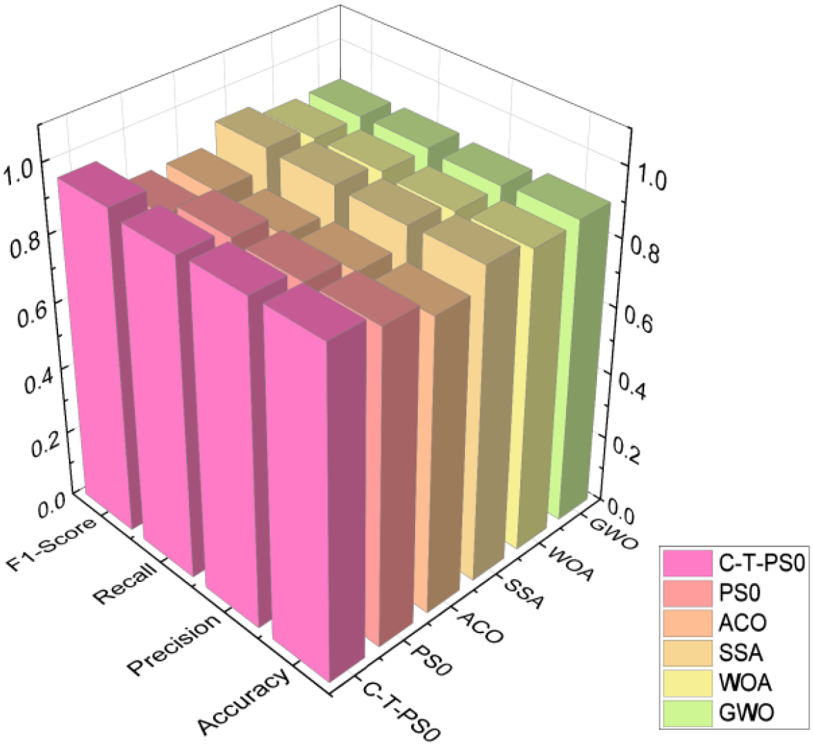 Experimental verification showed the C-T-PSO-Cole-Cole hybrid model exceeded 93% in all core metrics (accuracy, precision, recall, F1-score). Comparative experiments with six swarm intelligence optimization algorithms confirmed the model's comprehensive superiority. Convergence curve analysis based on standard test functions demonstrated faster and more stable convergence of the C-T-PSO algorithm. The final model achieved non-destructive diagnosis of salt stress in P. edulis using UHF RFID technology with 95.3% accuracy.