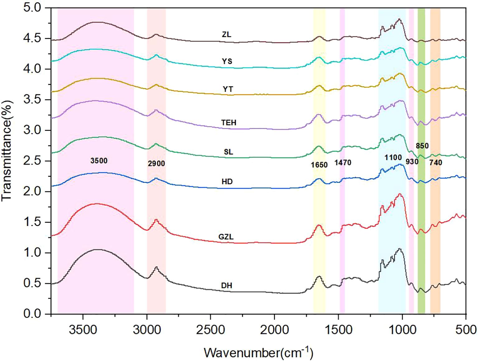 The KBr pellet method, through fine grinding and high-pressure forming, effectively ensured sample homogeneity and particle size consistency, significantly reducing light scattering interference, making it particularly suitable for quantitative analysis. Although Attenuated Total Reflectance (ATR) technology offers more convenient sample preparation, its signal intensity is susceptible to variations in sample-crystal contact conditions, potentially introducing variability. To maintain consistency and comparability with historical data, the classical KBr pellet method was chosen for this study. Subsequent research could consider introducing ATR technology and establishing corresponding spectral conversion models for method interoperability.