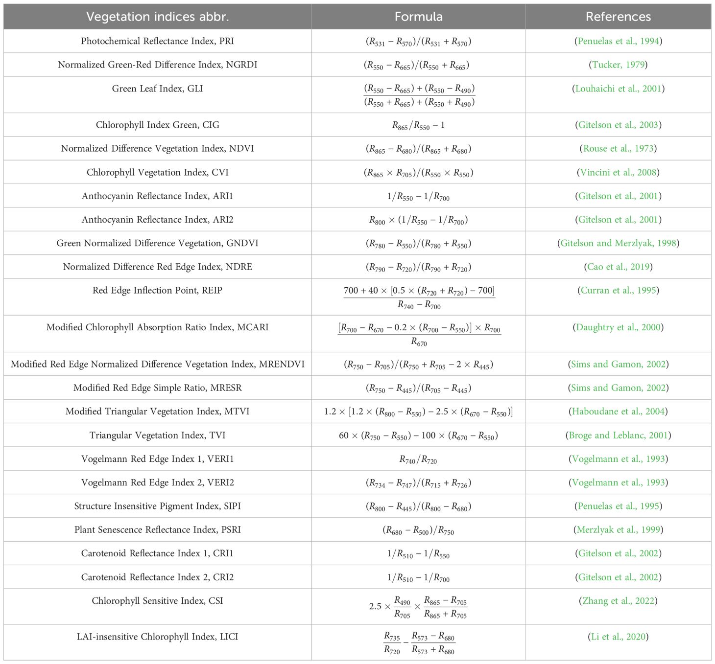 Broge, N. H. and Leblanc, E. (2001). Comparing prediction power and stability of broadband and hyperspectral vegetation indices for estimation of green leaf area index and canopy chlorophyll density. Remote Sens. Environ. 76, 156–172. doi: 10.1016/s0034-4257(00)00197-8