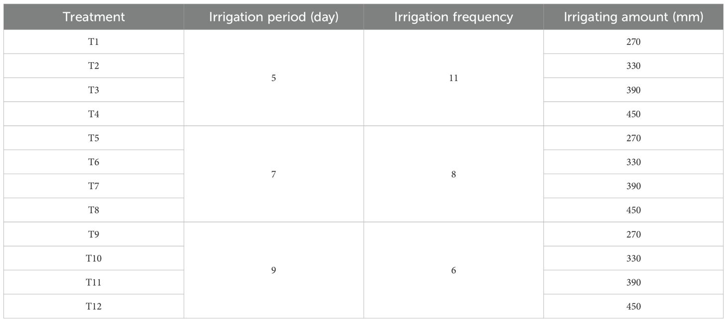Introduction: Establishing an appropriate irrigation schedule is fundamental for the sustainable management of agricultural water resources, effectively alleviating water scarcity and ensuring regional food security.