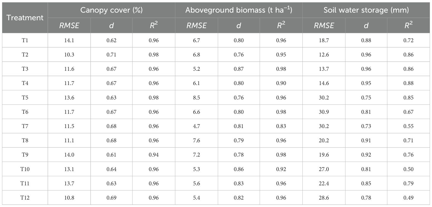 2.2.5 Canopy cover, aboveground biomass, soil water storage and yield