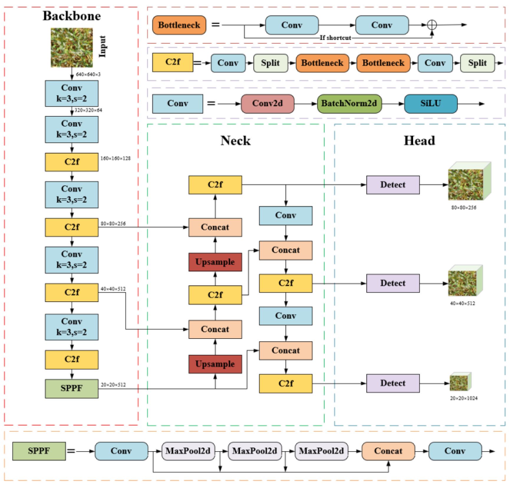 Finally, the upsampled feature map of size C × sH × sW is generated using the sampling set through grid sampling, as shown in Equation 2. DySample adapts to capture key details through dynamic sampling position adjustment, significantly enhancing its ability to represent complex textures of wheat spikes and small-scale targets.