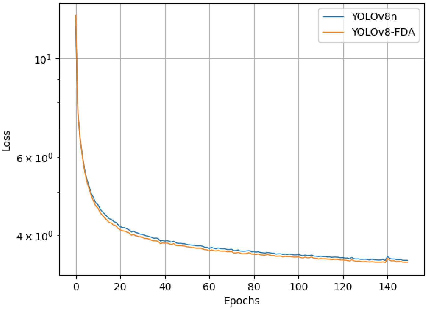 As shown in Figure 10, the larger learning rate in the early stages of training causes the loss of both models to decrease rapidly, but also leads to instability. As training progresses, the models gradually approach saturation, the learning rate decreases, and the rate of loss reduction slows down. Eventually, the models converge to a stable state. Compared to the baseline model, the YOLOv8-FDA demonstrates faster convergence and lower loss throughout the training process.