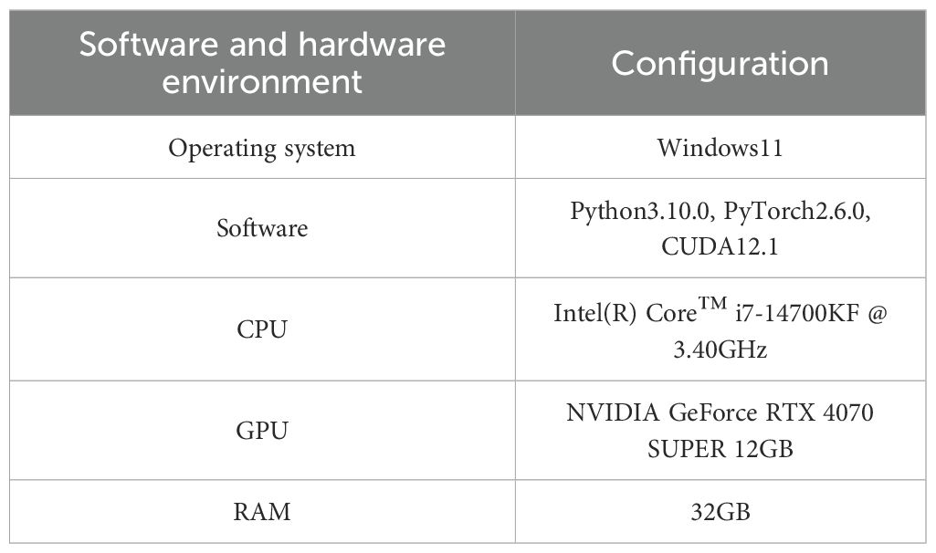 The experimental hardware and software environment and the model training parameters are shown in Tables 2, 3 respectively.