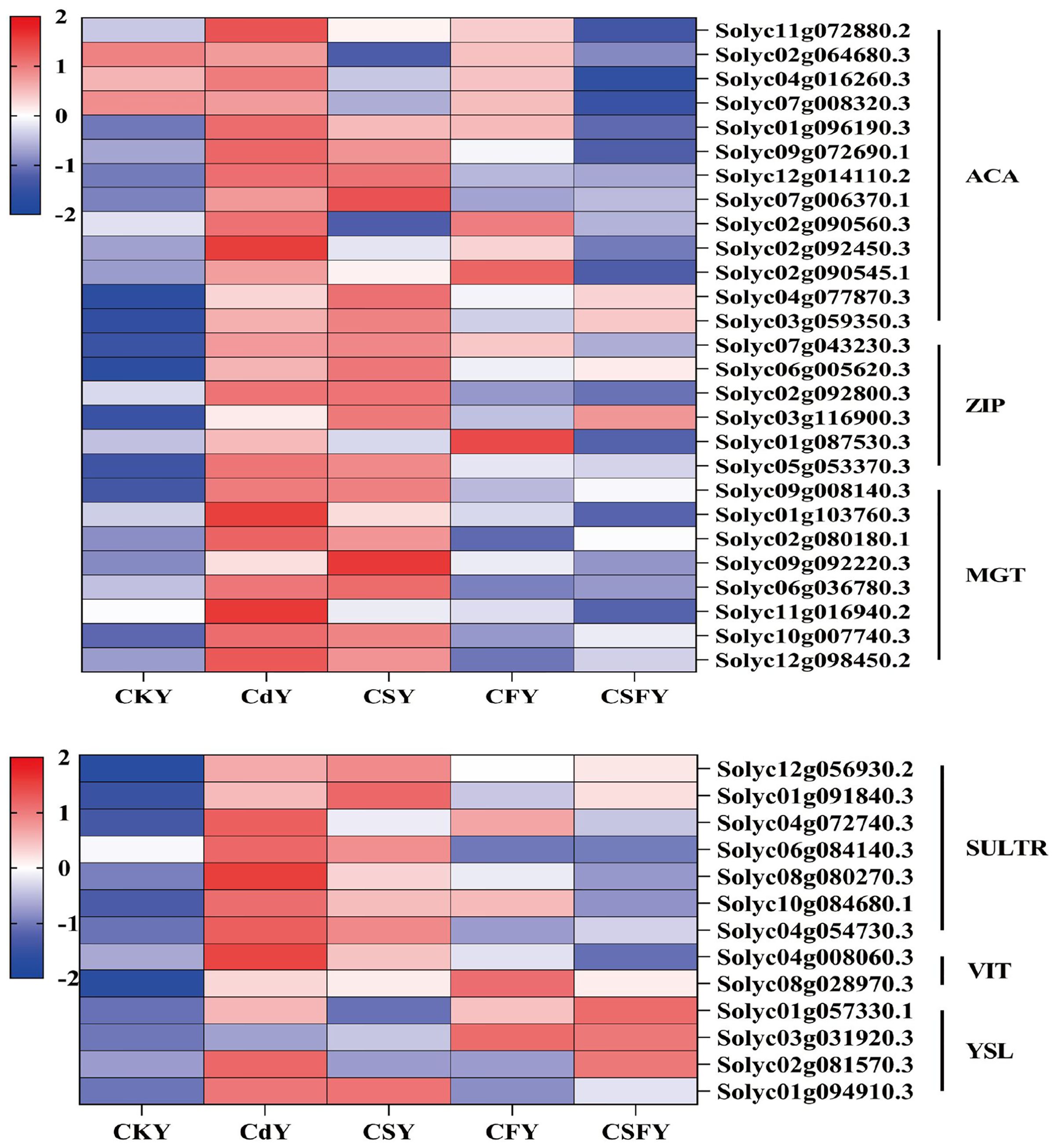 “In this experiment, Cd exposure upregulated genes encoding ACA, ZIP, MGT, SULTR, VIT, and YSL, while CSF treatment significantly downregulated these genes (Figure 12).”