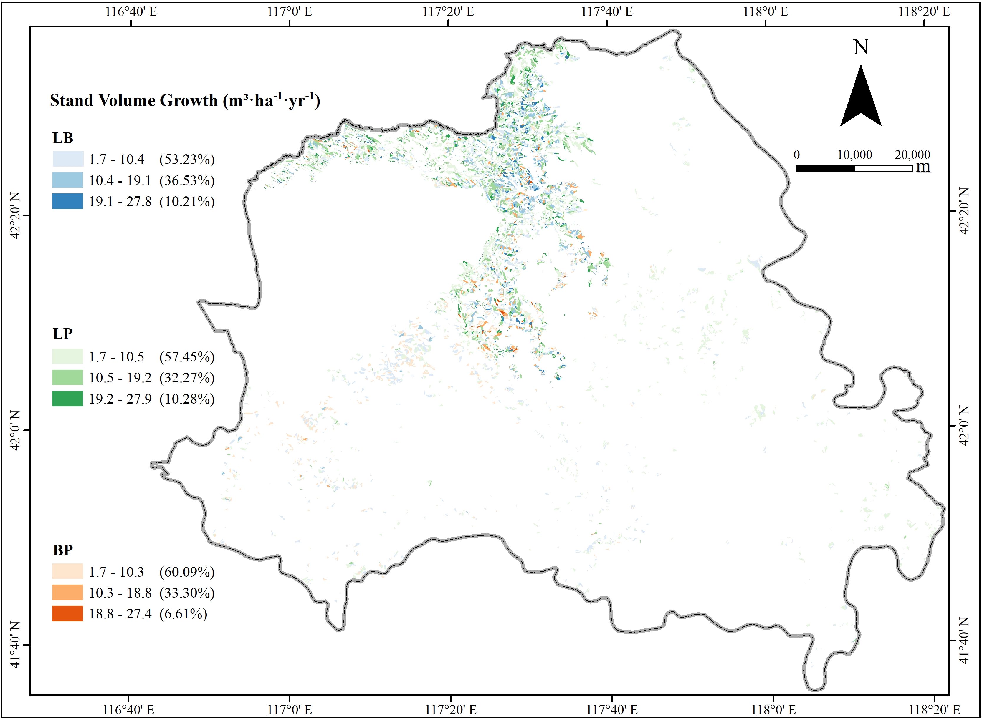 3.1 Spatial distribution pattern of stand volume growth