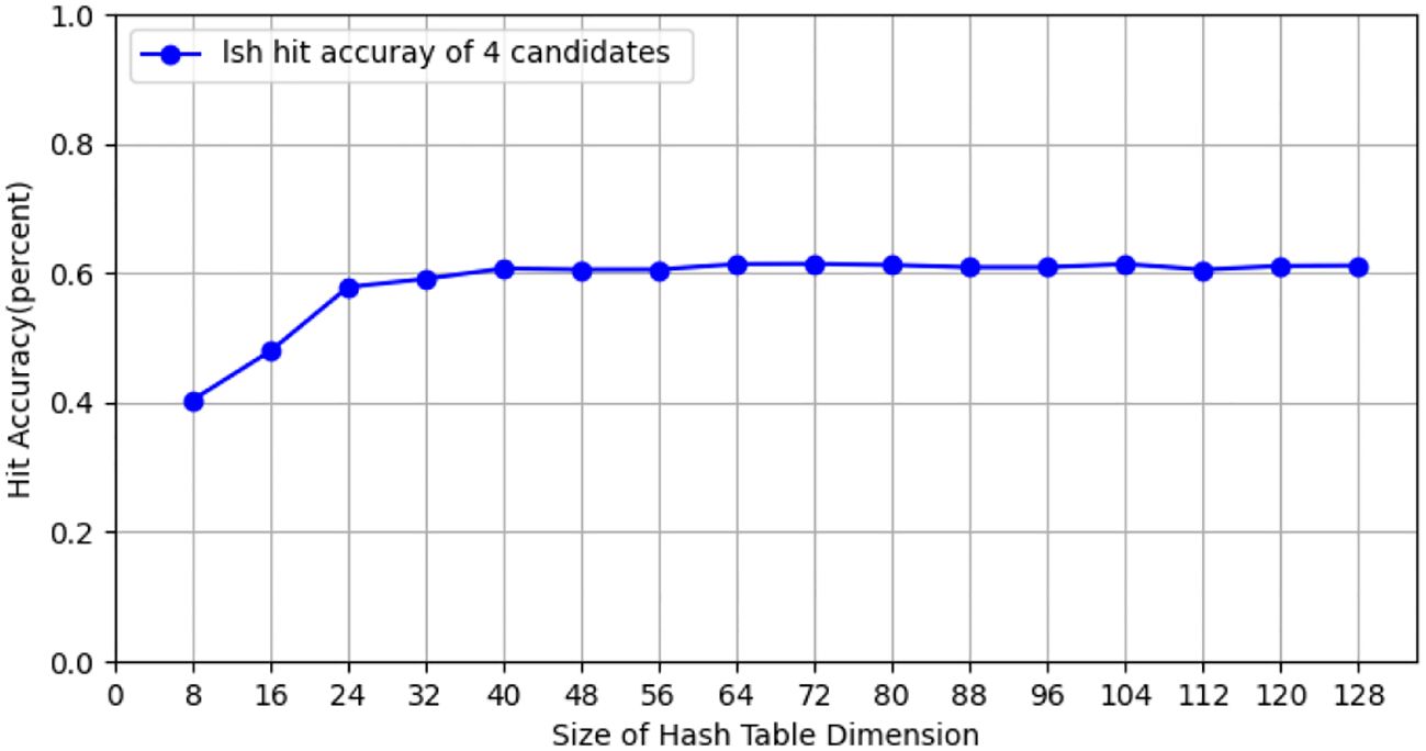 Figure 5. The hit rate of providing four candidate members for hash tables of different sizes on CIFAR-10 dataset.