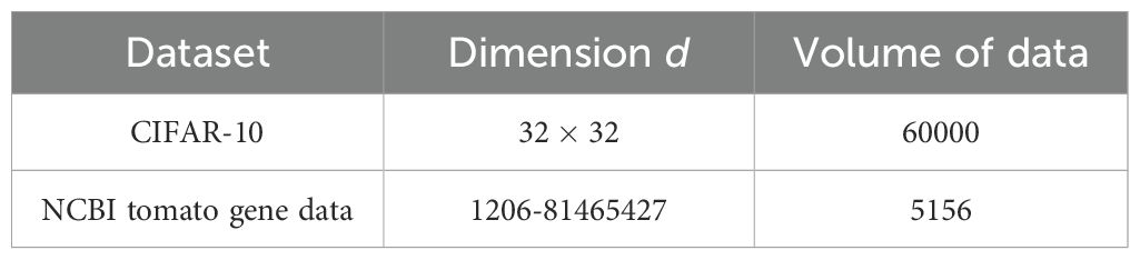 ● The verification experiment was conducted on a regular computer with a 2.5GHz CPU and 16GB of memory running the Ubuntu 22.04 operating system. Python 3.11 was used as the programming language. To verify the correctness of the algorithm, the CIFAR-10 image dataset was employed for simulation. To test the algorithm’s performance on crop gene data, the NCBI tomato gene dataset was utilized for application and performance evaluation.