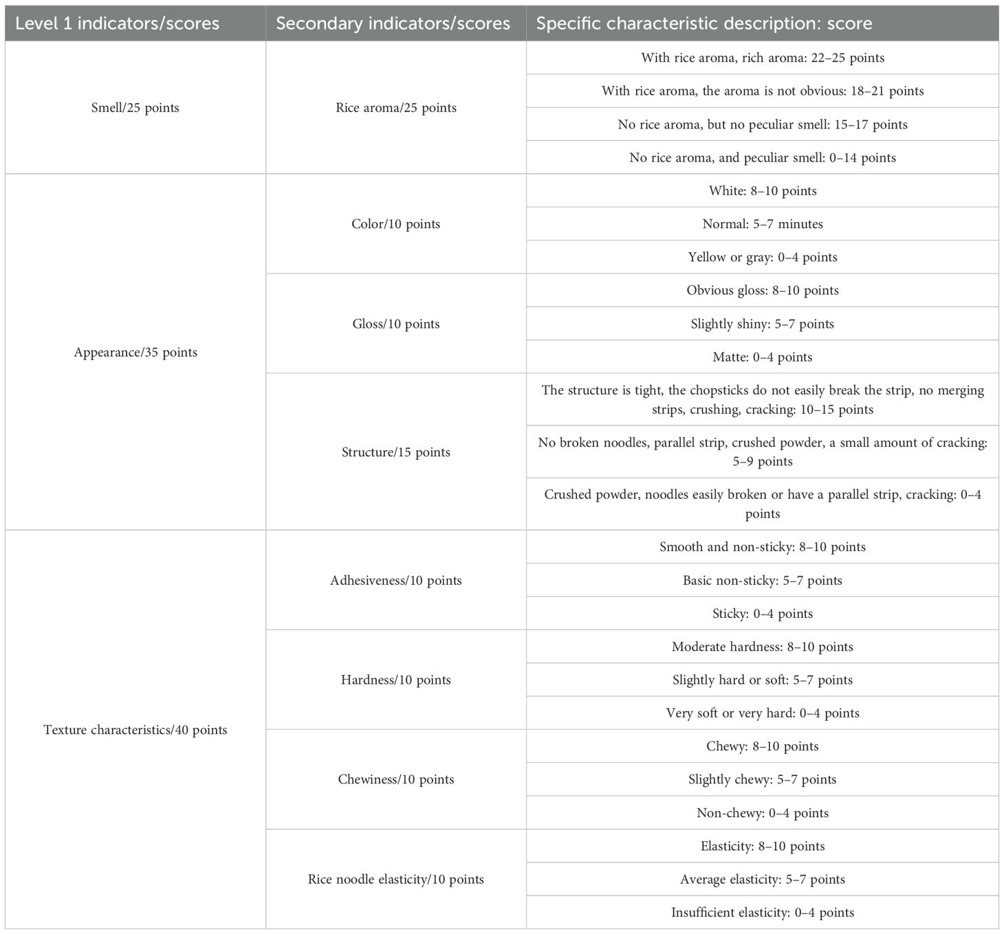 2.3.4 Sensory evaluation of fresh wet rice noodles