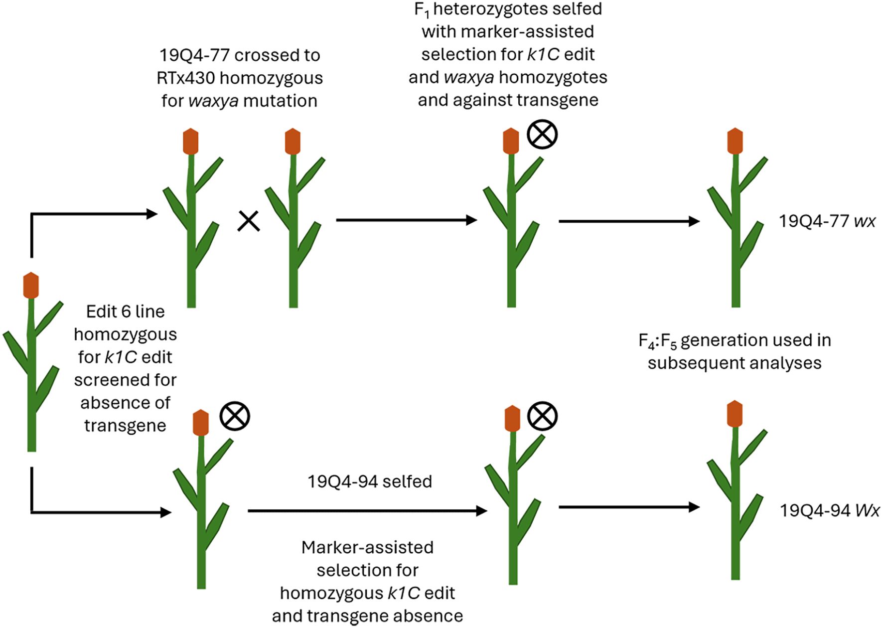 Figure 1. Visualization schematic for lines 19Q4–77 wx and 19Q4–94 Wx as derived from CRISPR Event 6 germplasm.