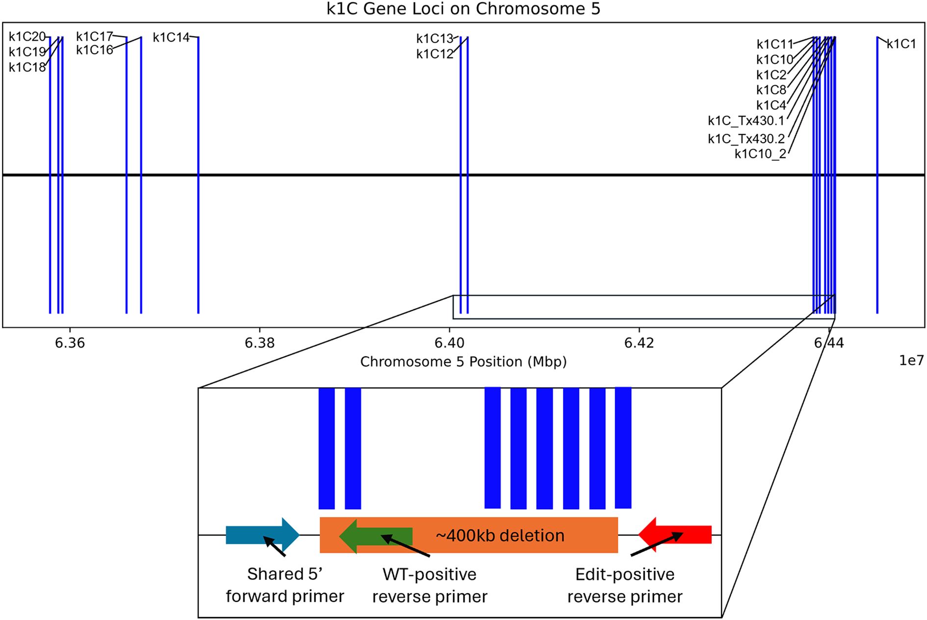 PacBio WGS and junction fragment PCR revealed a ~400-kb deletion in k1C family