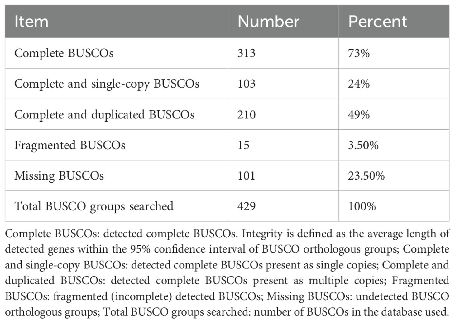 Simão, F. A., Waterhouse, R. M., Ioannidis, P., Kriventseva, E. V., and Zdobnov, E. M. (2015). BUSCO: assessing genome assembly and annotation completeness with single-copy orthologs. Bioinf. (Oxford. England). 31, 3210–3212. doi: 10.1093/bioinformatics/btv351